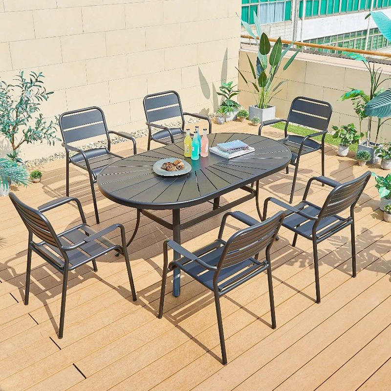• 6개의 전체 알루미늄 의자 + 타원형 플라스틱 목재 테이블
