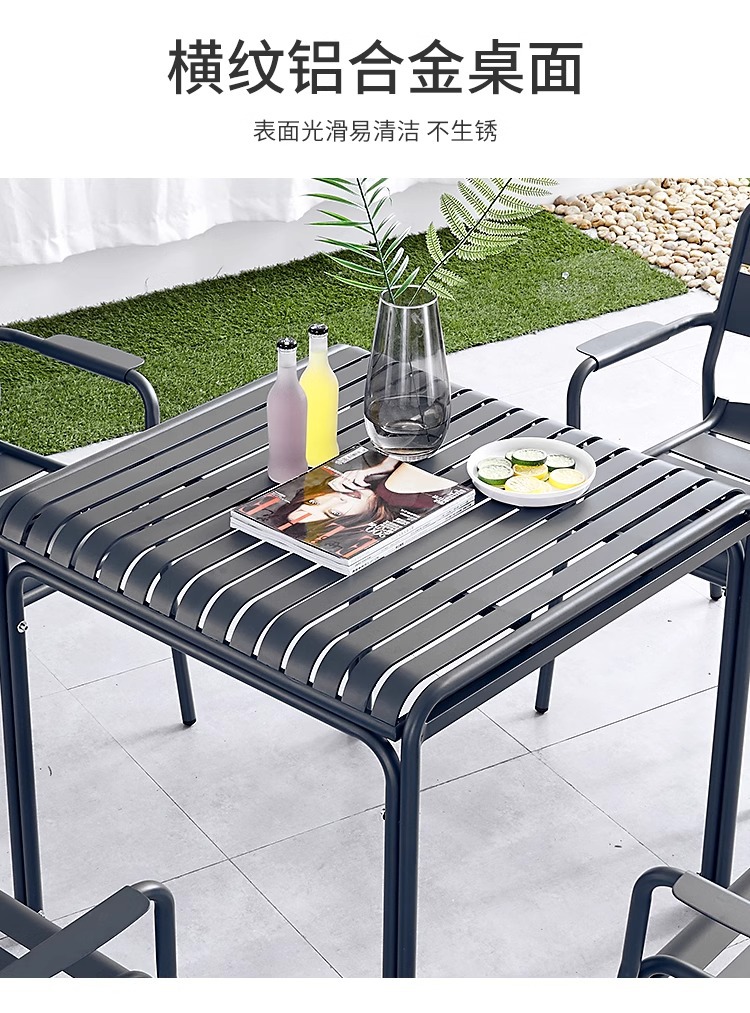 우유 차 가게 야외 발코니 레저 커피 테이블 조합 정원 안뜰 야외 알루미늄 합금 야외 테이블 및 의자 방수 선 스크린