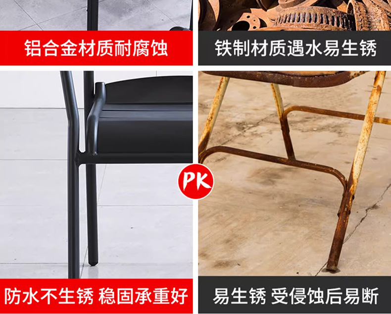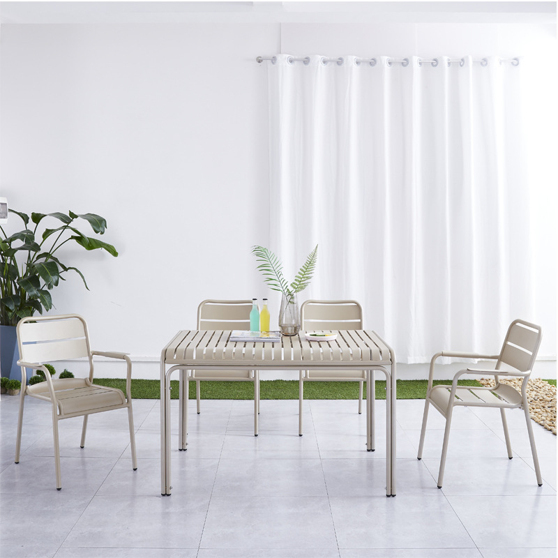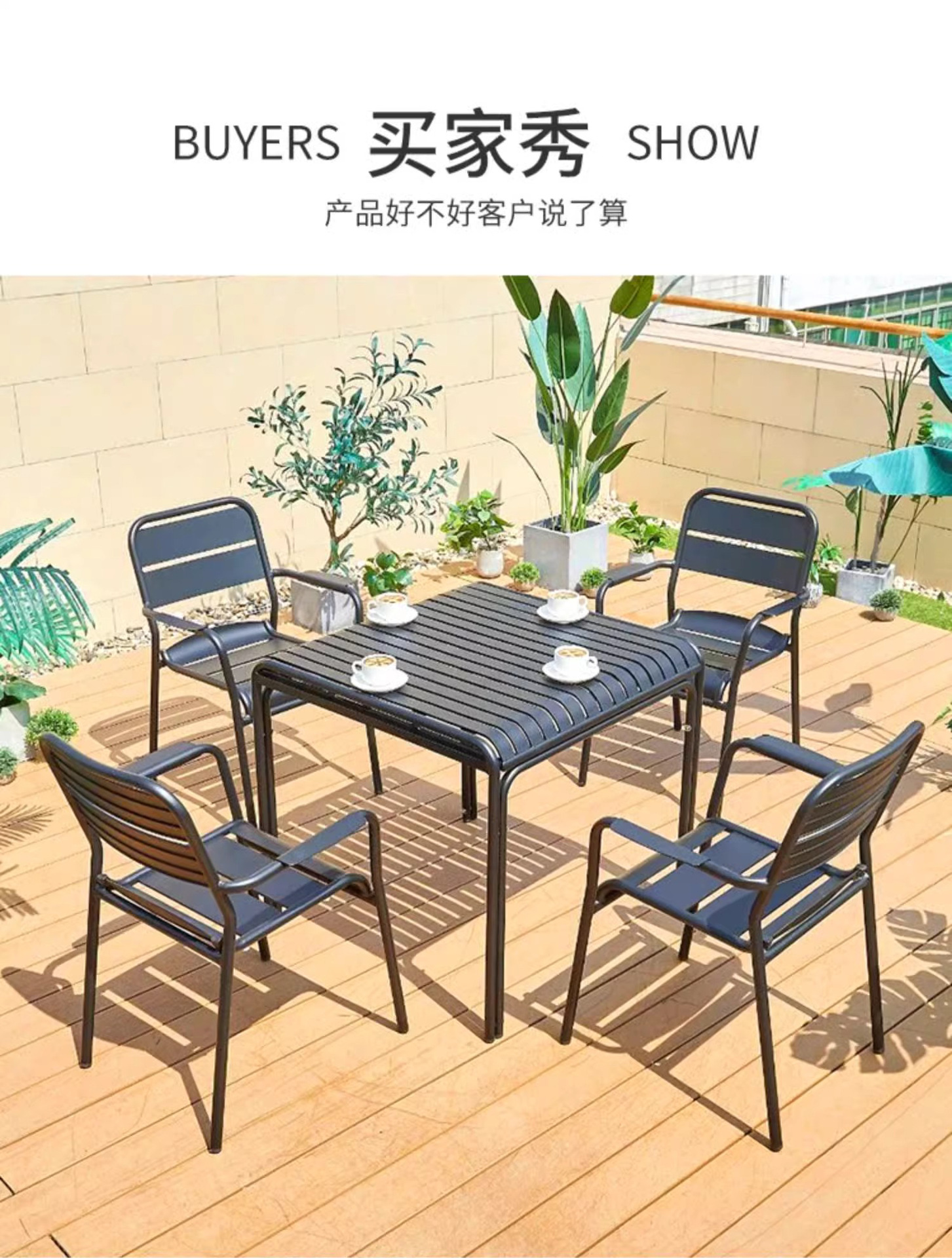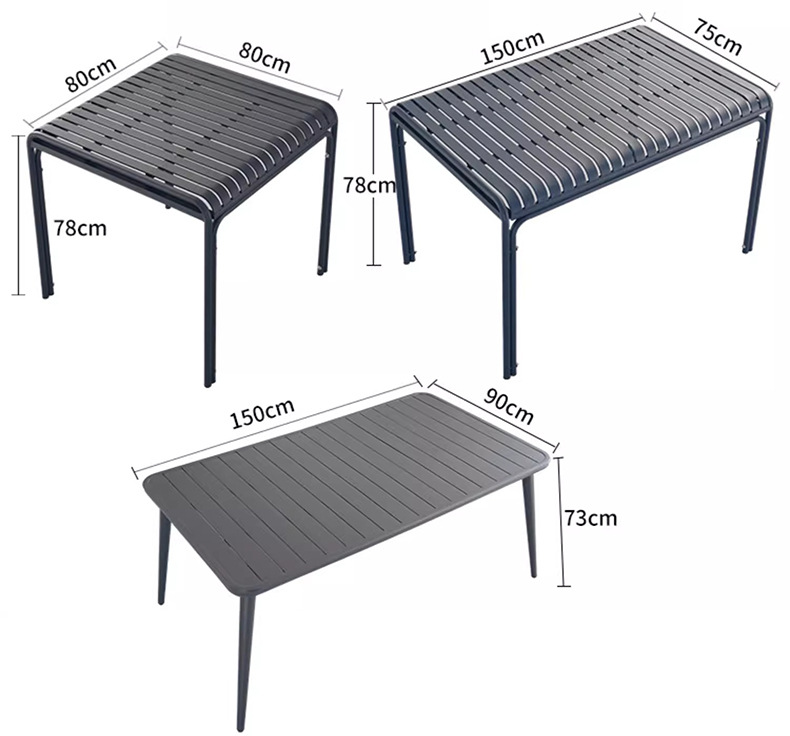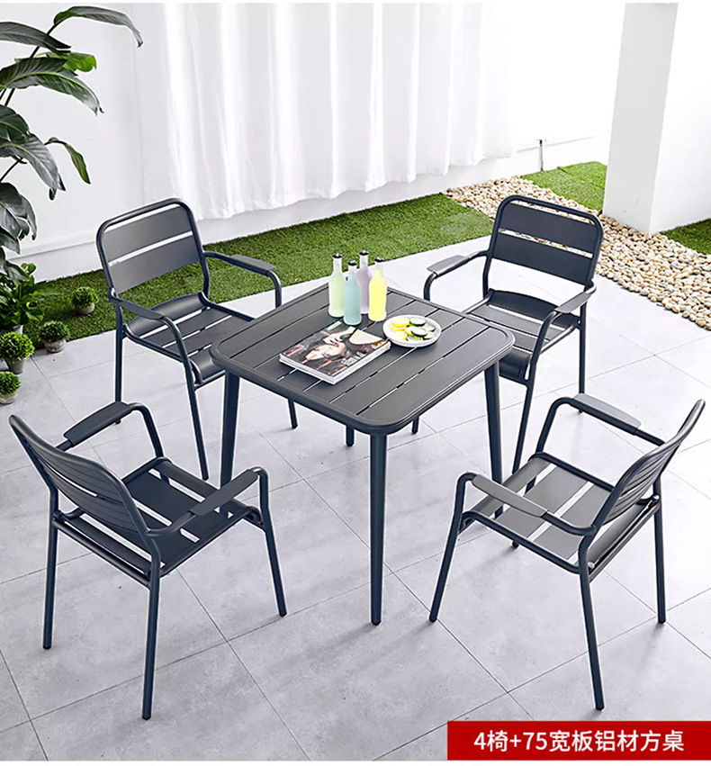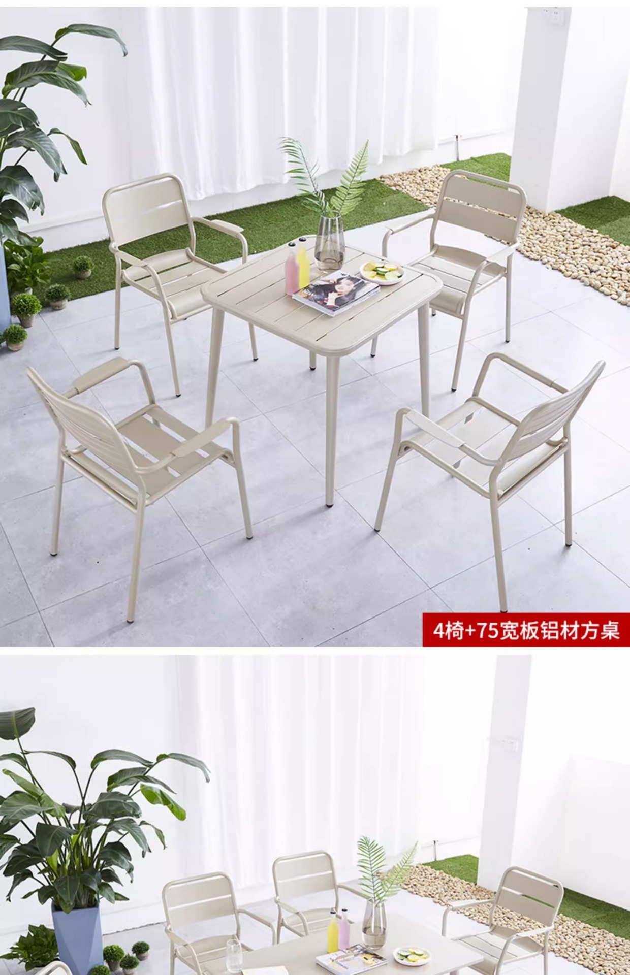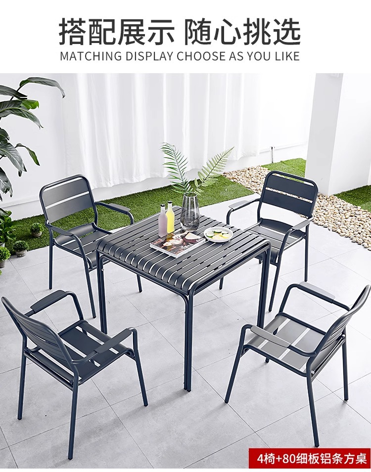 • 전체 알루미늄 의자 4개 + 정사각형 알루미늄 스트립 테이블 80개