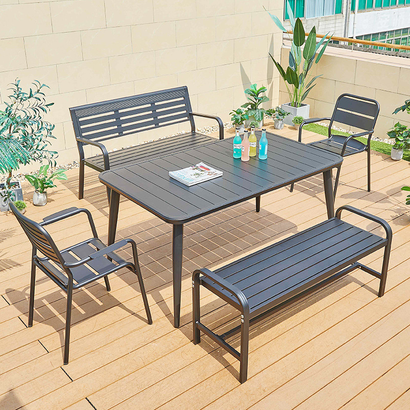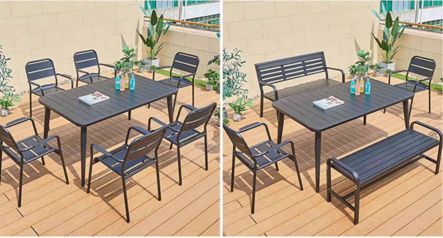 • 전체 알루미늄 의자 2개 + 플랫 튜브 벤치 + 공원 의자 + 150*90 알루미늄 판 테이블