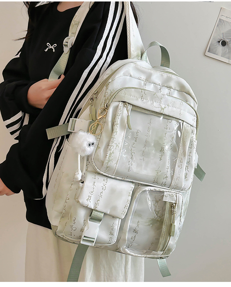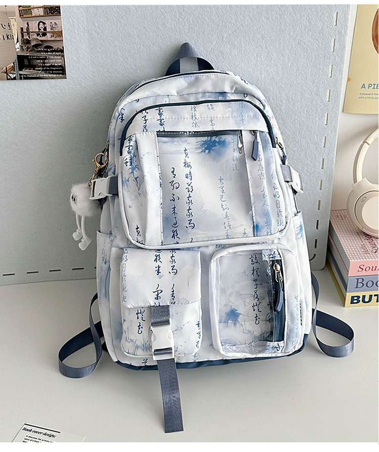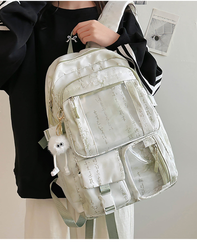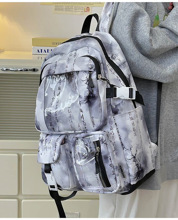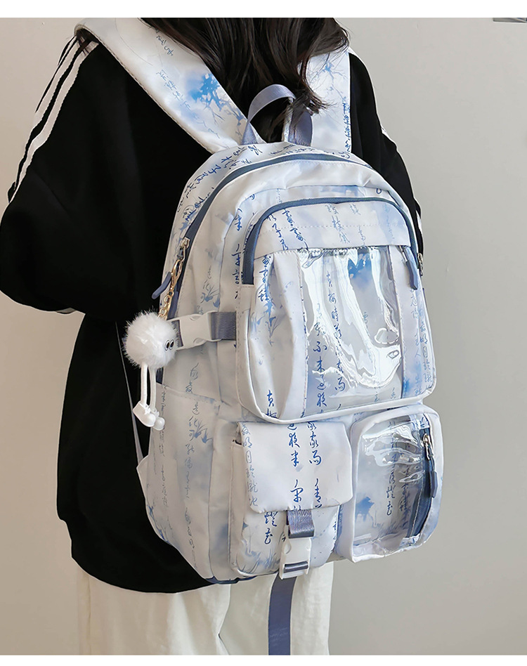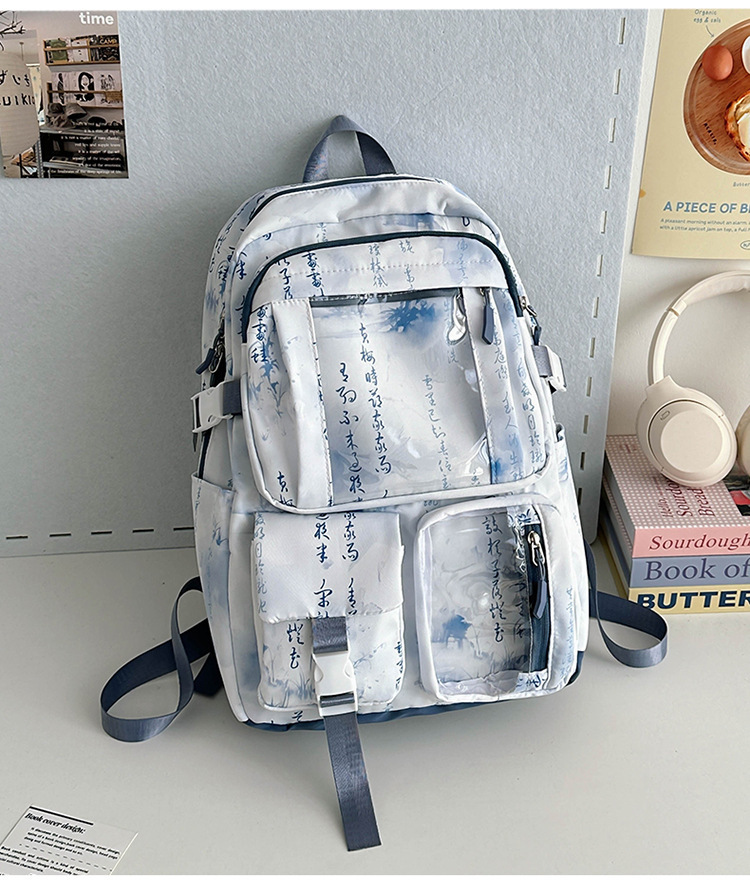 중학생용 대용량 책가방, 중국풍 투명 다용도 포켓, 남녀공용 방수 내마모성, 틈새시장 고급형 백팩스토어 가기