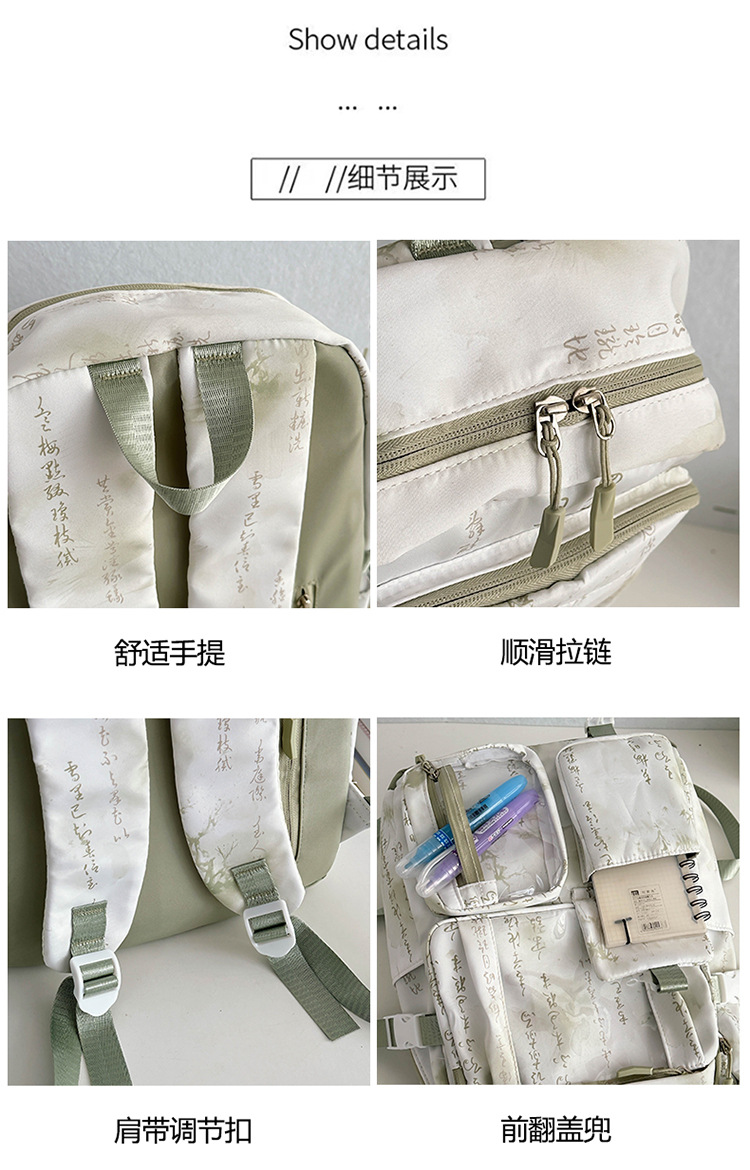 중학생용 대용량 책가방, 중국풍 투명 다용도 포켓, 남녀공용 방수 내마모성, 틈새시장 고급형 백팩