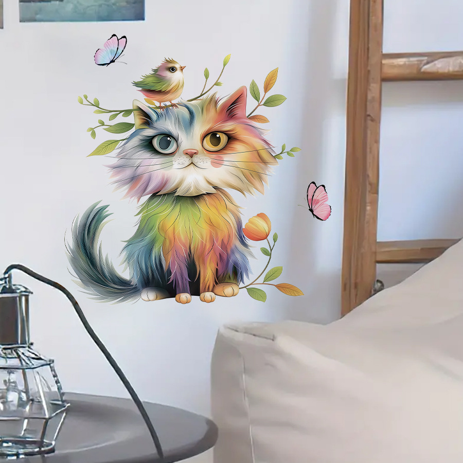 만화 수채화 고양이 새 나비 셀프 접착 벽 스티커 침실 어린이 방 주방 장식 스티커 HS1177C
