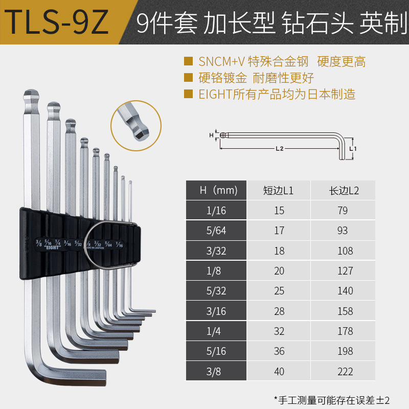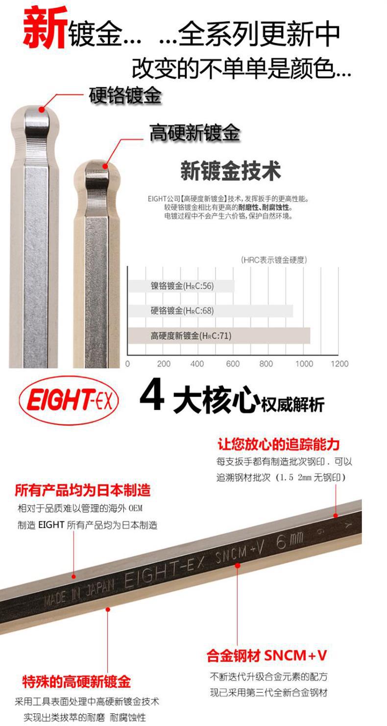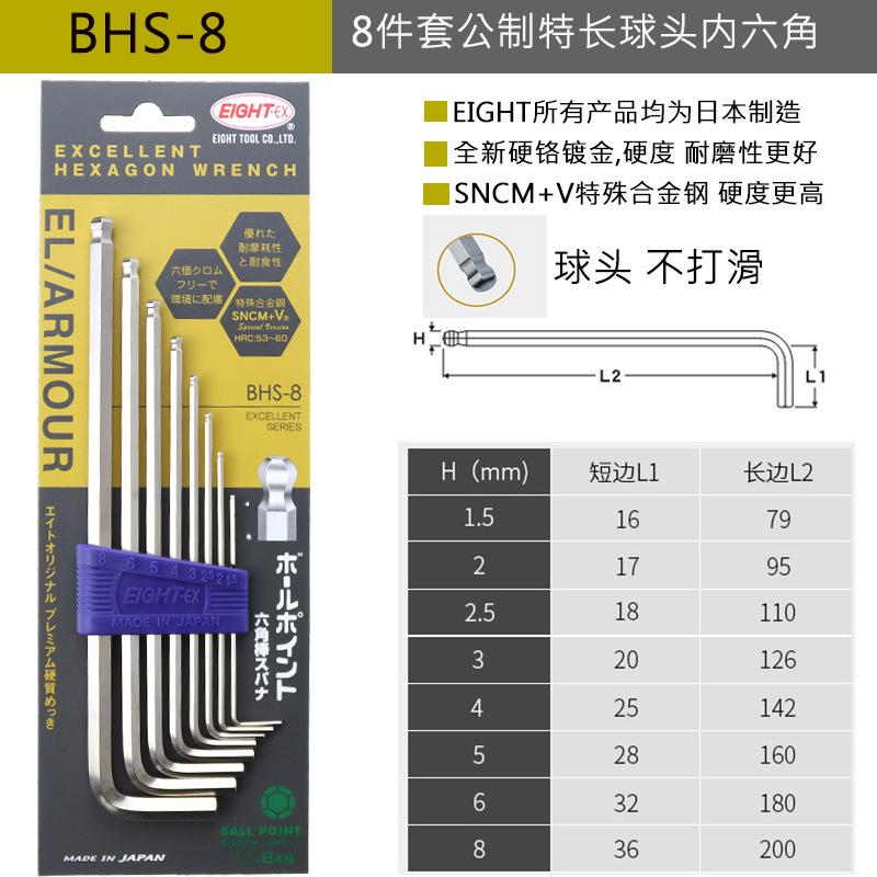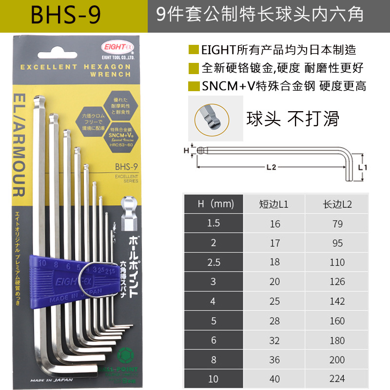 일본 EIGHT Allen 렌치 수입 앨런 렌치 BHS-9TLS-7S/8/9 새로운 금 도금