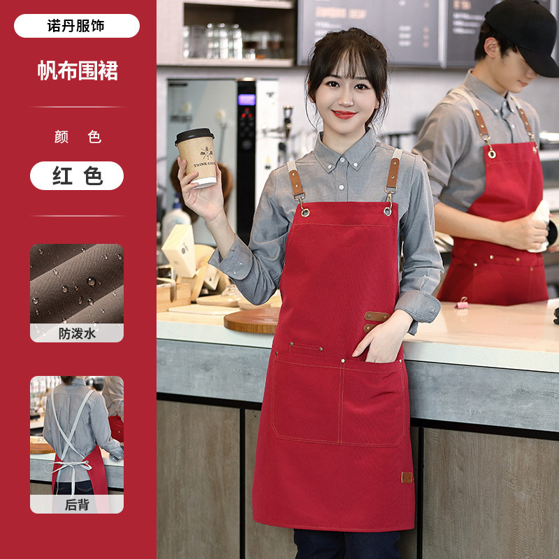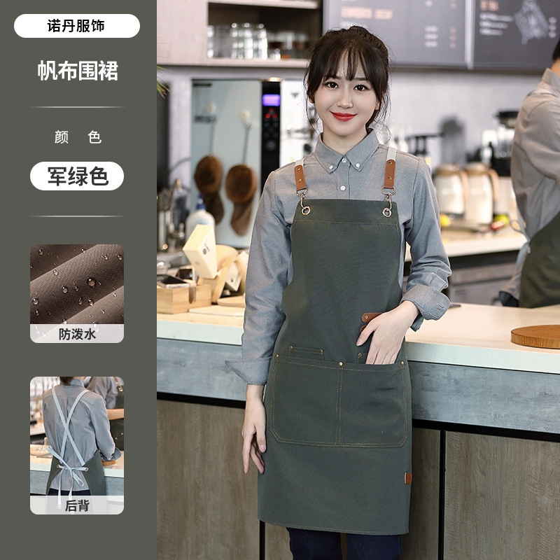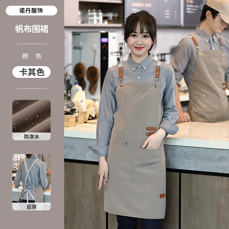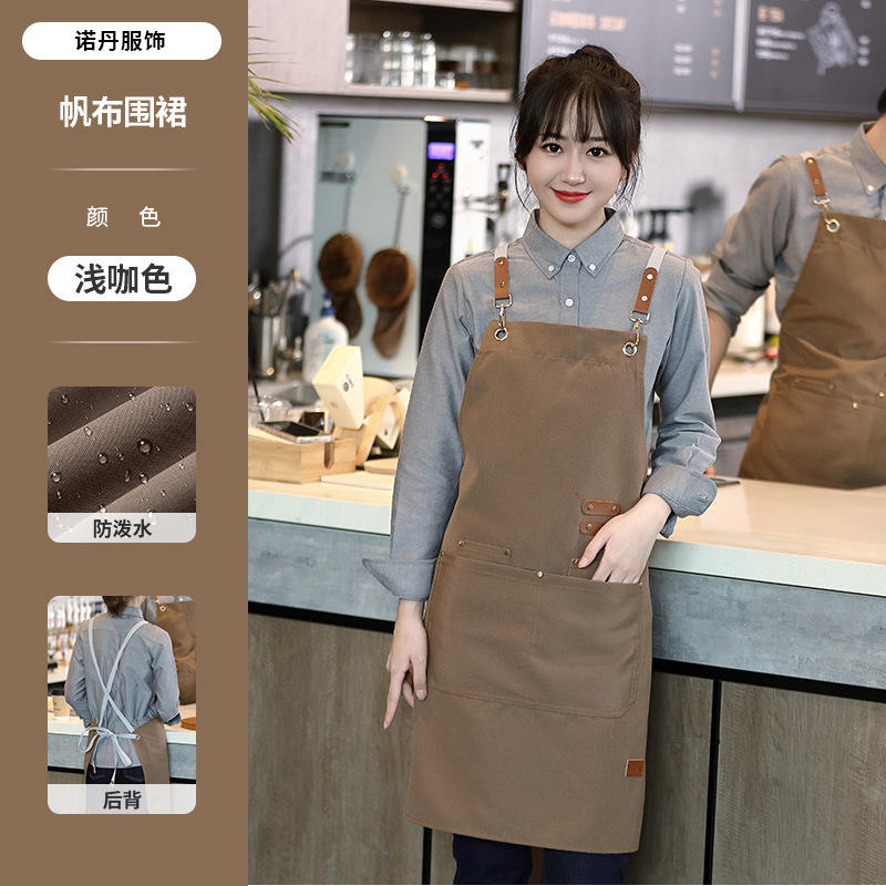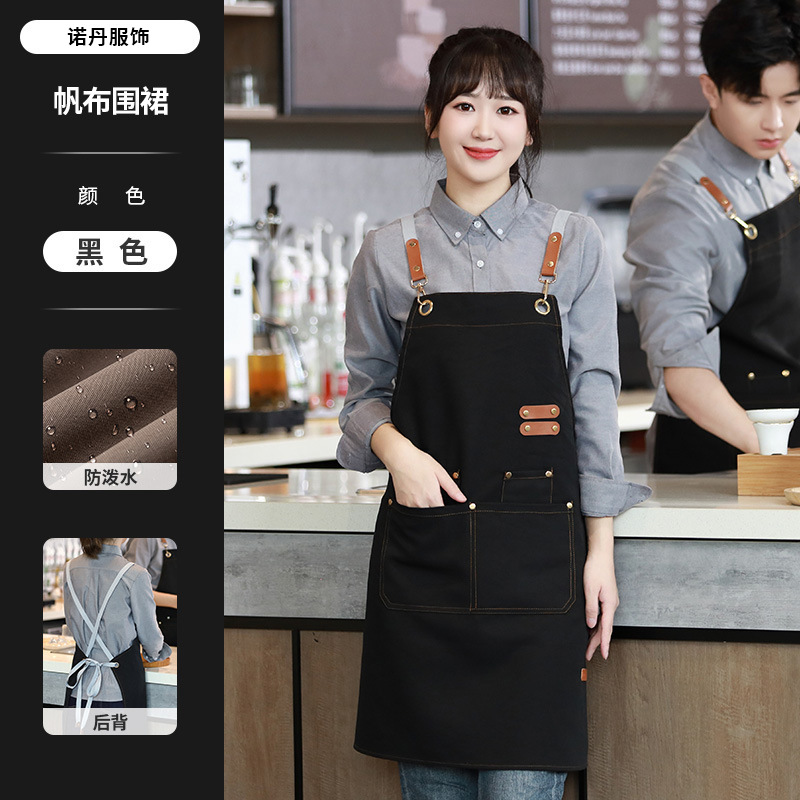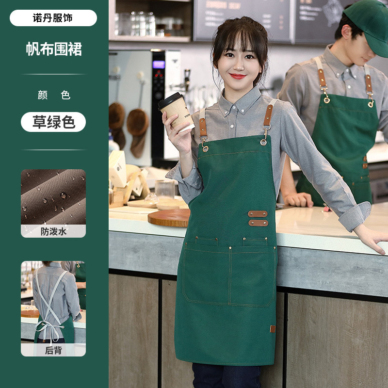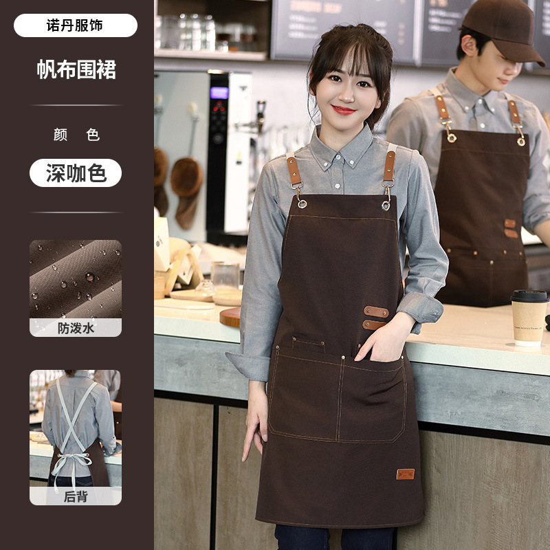 캔버스 앞치마 로고 인쇄 우유 차 가게 꽃 가게 커피 뜨거운 다이어 방수 작업 옷 여성용 맞춤형
