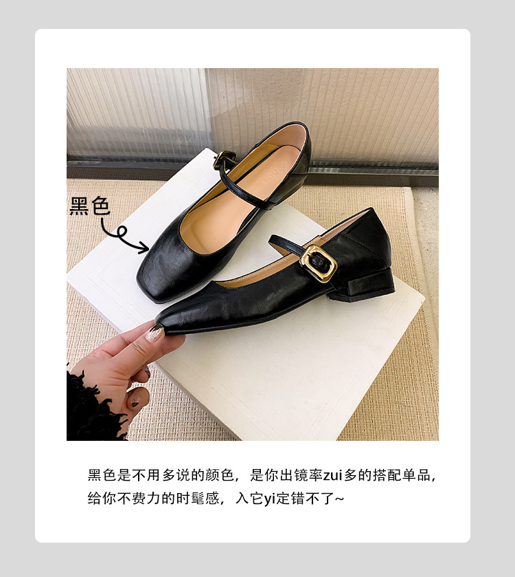 우아한 스퀘어 토 플랫 싱글 레이어 신발 여성 2025 봄 새로운 프랑스 스타일 메탈 버클 메리 제인 신발 얕은 입 통근 신발스토어 가기