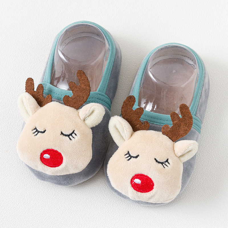 Qicai 2023 바닥 양말 아기 양말 가을과 겨울 기모 어린이 유아 양말 만화 미끄럼 방지 양말 실내 신발