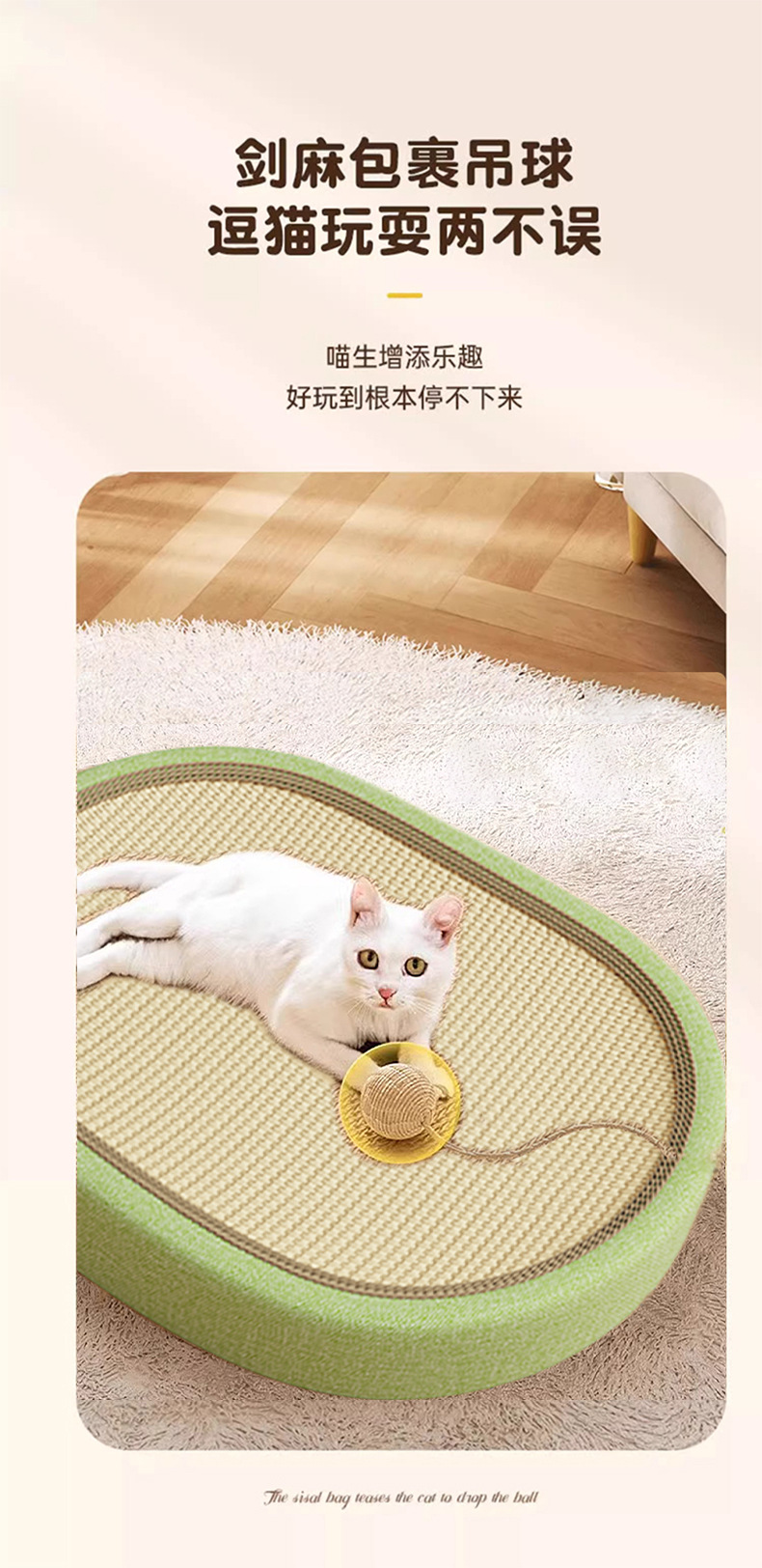 • 사이잘 담요 [그린] - 61cm 대형 - 웃긴 고양이 스틱