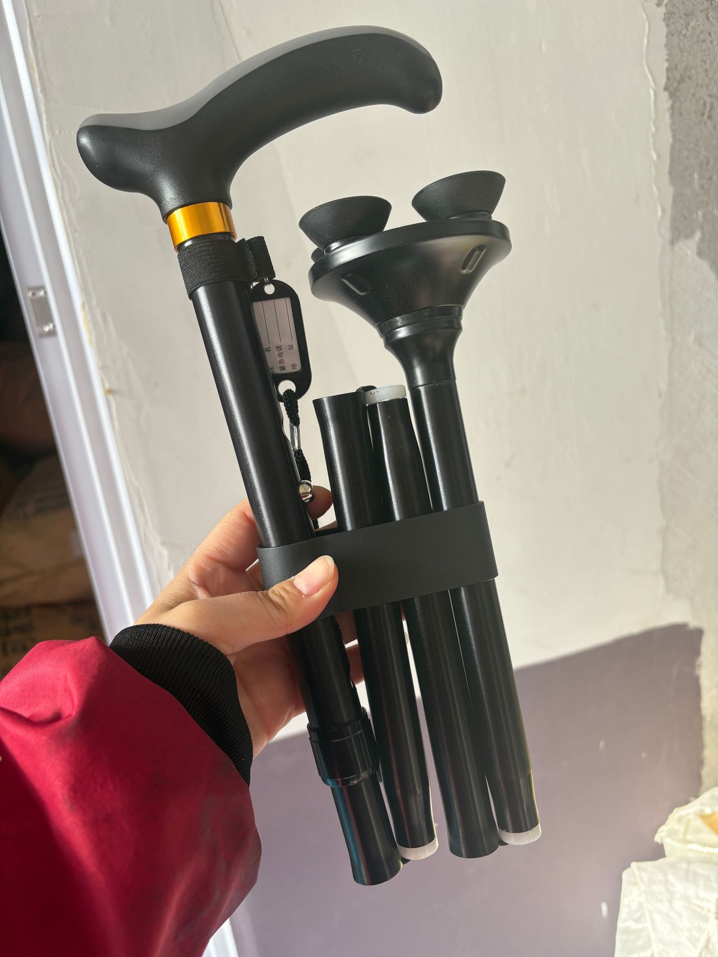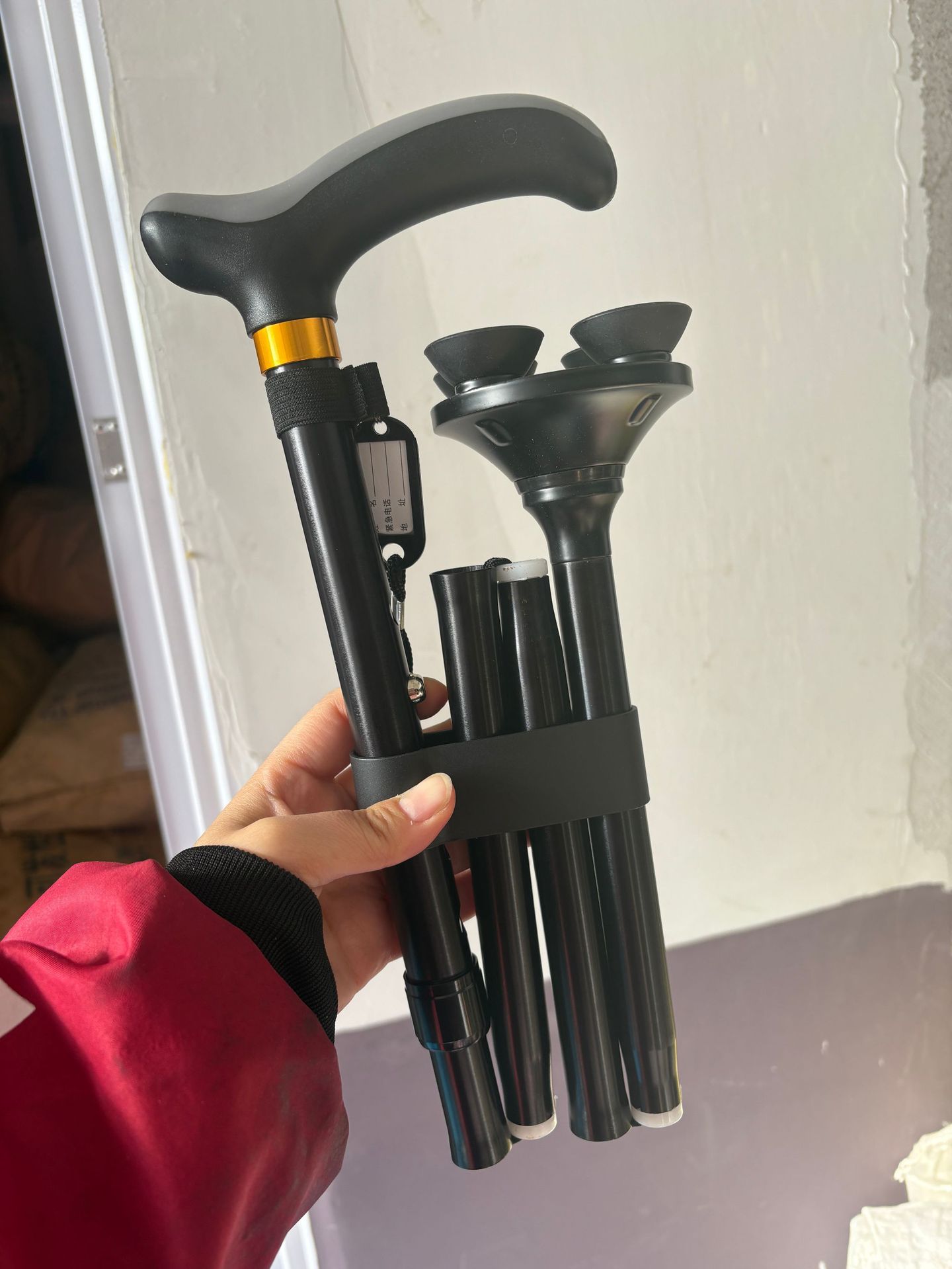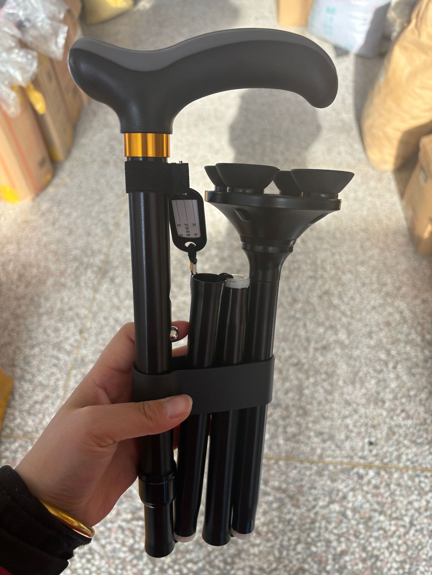 검정색과 회색 고무 처리된 미끄럼 방지 텔레스코픽 접이식 휴대용 4각 알루미늄 합금 지팡이
