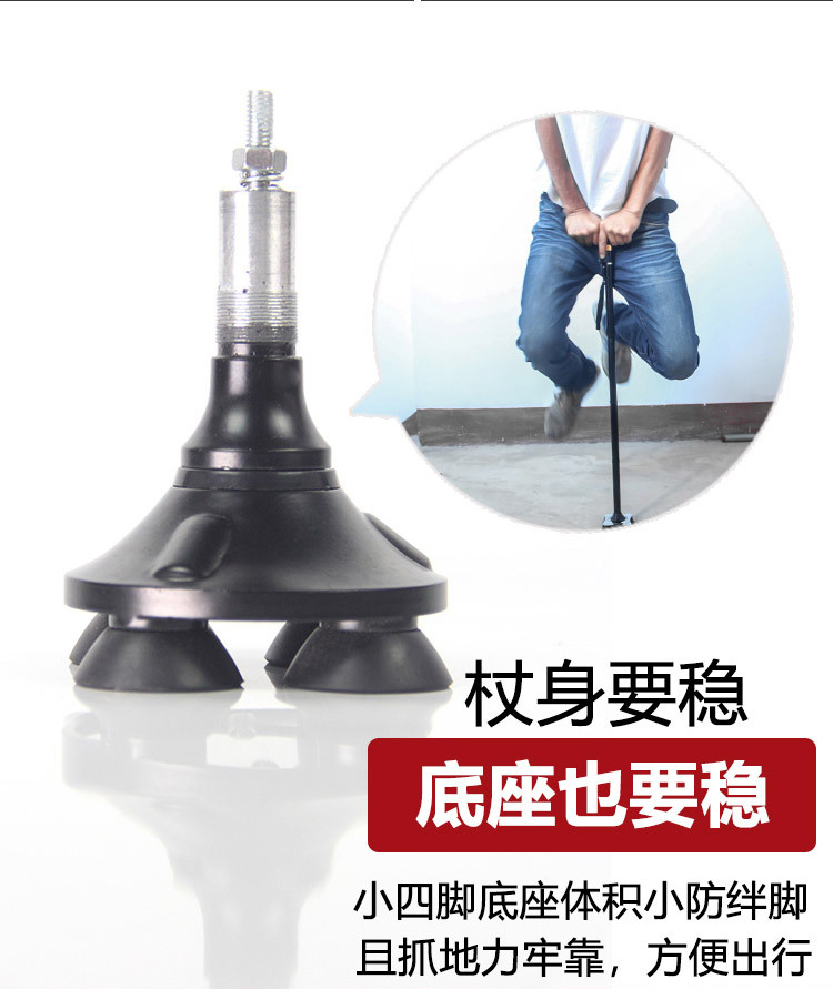 검정색과 회색 고무 처리된 미끄럼 방지 텔레스코픽 접이식 휴대용 4각 알루미늄 합금 지팡이스토어 가기