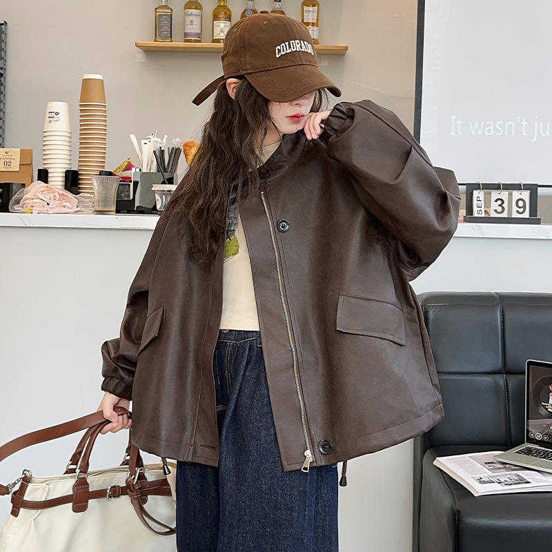 소녀의 봄과 가을 가죽 자켓 2025 새로운 서양 스타일 유행 중 큰 아이 한국 스타일 트렌디 쿨 자켓 최고의 대외 무역스토어 가기