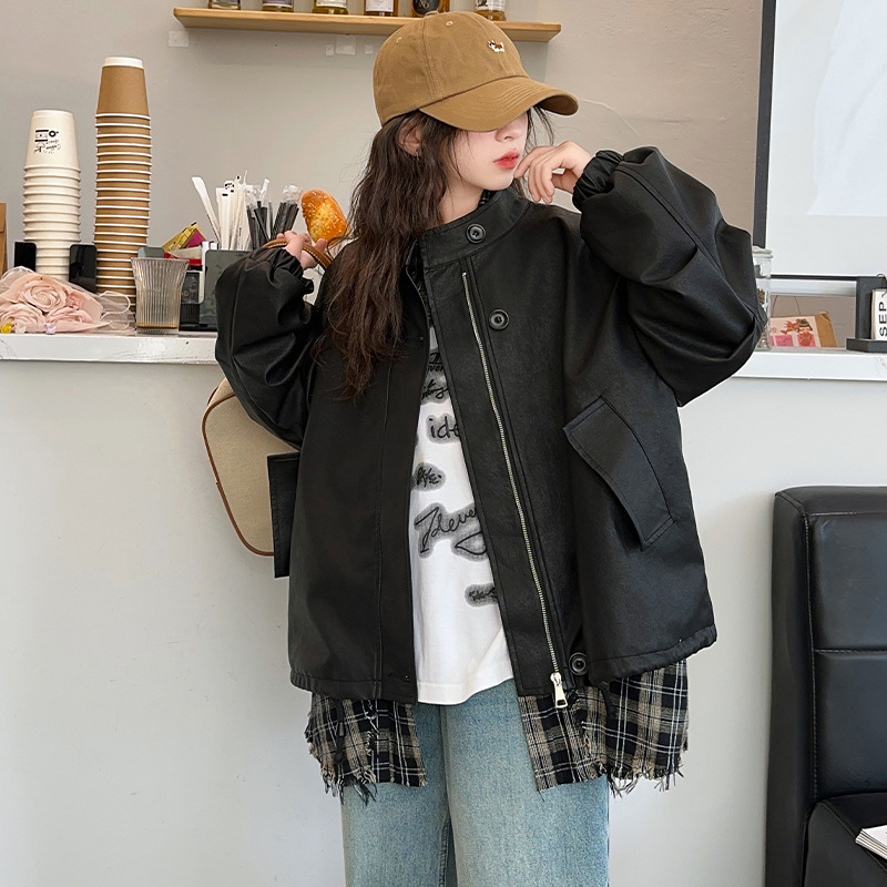 소녀의 봄과 가을 가죽 자켓 2025 새로운 서양 스타일 유행 중 큰 아이 한국 스타일 트렌디 쿨 자켓 최고의 대외 무역