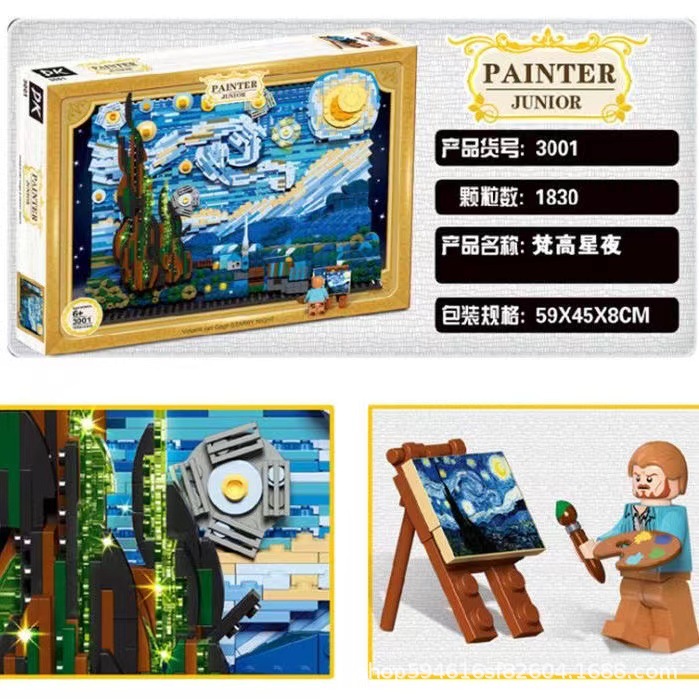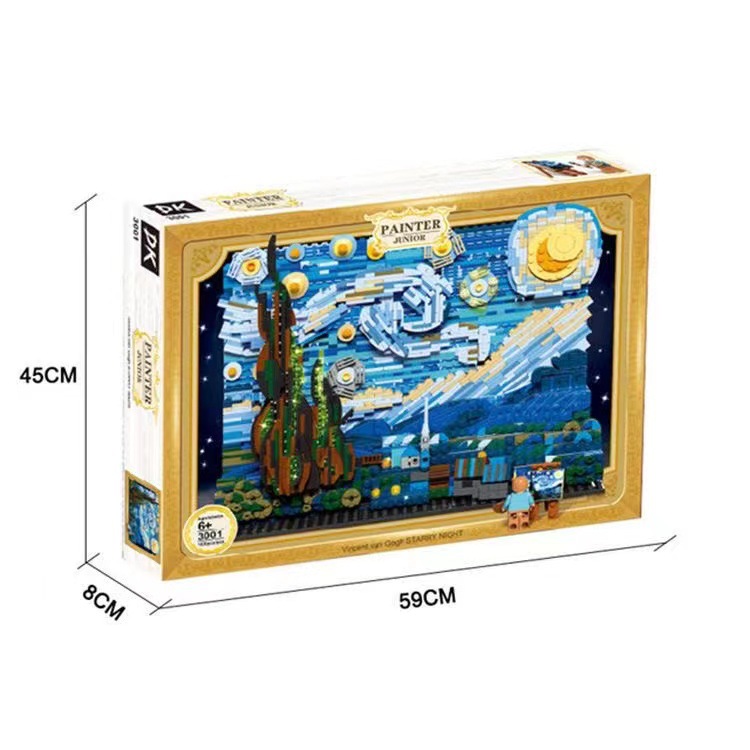 DK3001 크리에이티브 시리즈 반 고흐 스타 페인팅 모델 장식품 MOC 빌딩 블록 어린이 조립 건물 장난감스토어 가기