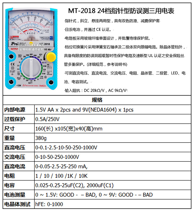 대만 바오공 포인터 형 유니버설 미터 오탐지 3 목적미터 멀티미터 24 단 MT-2019-C
