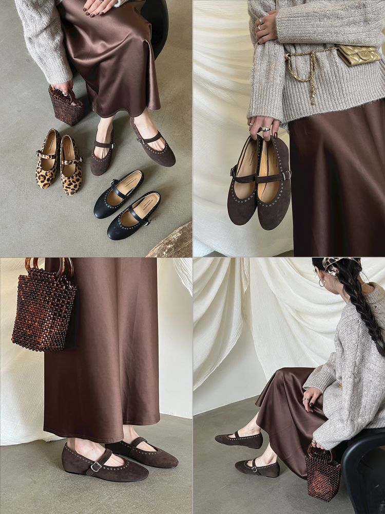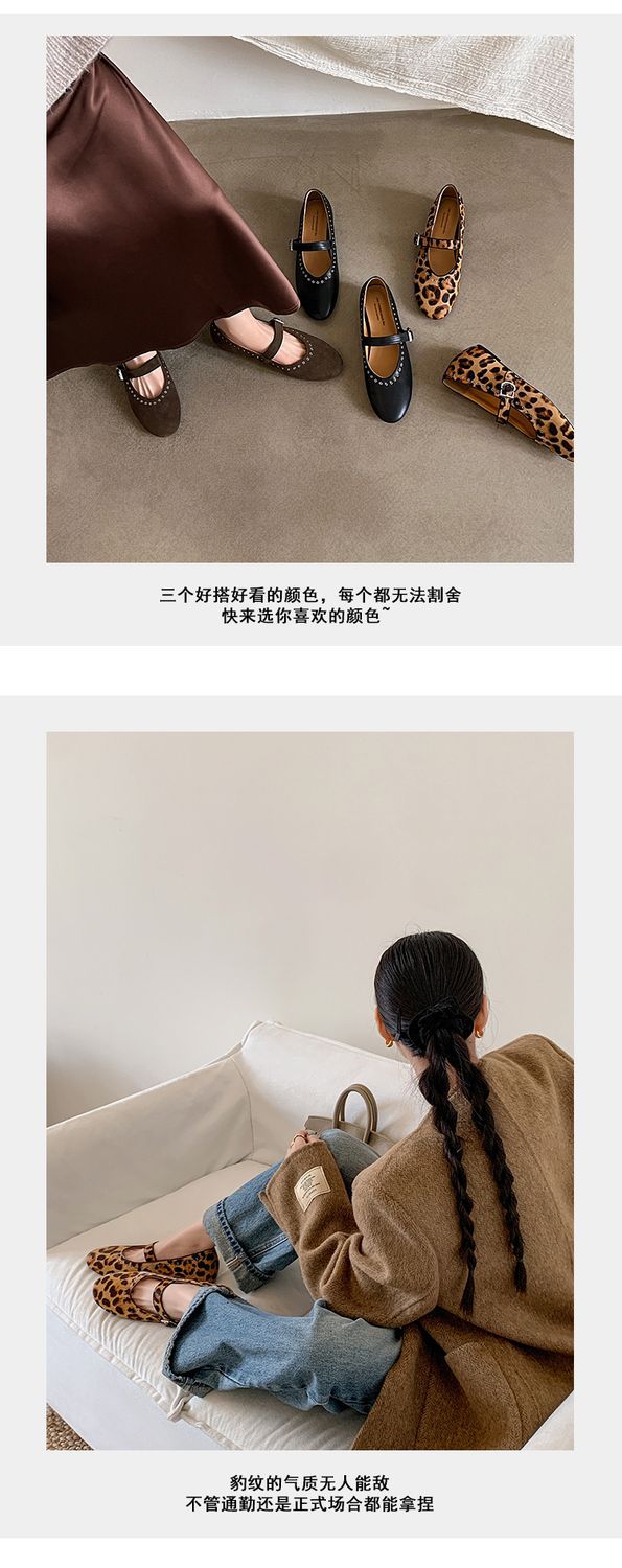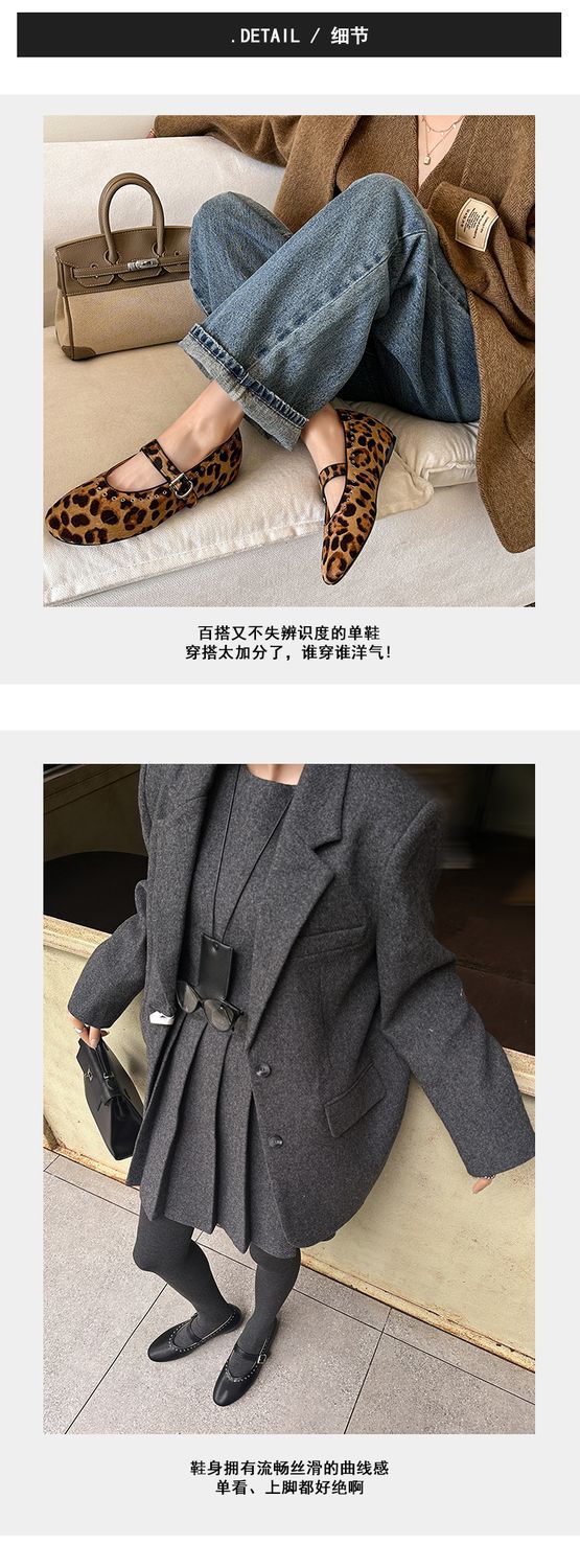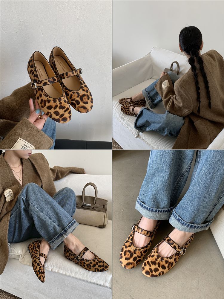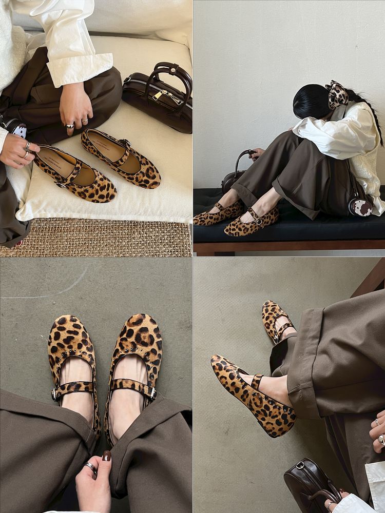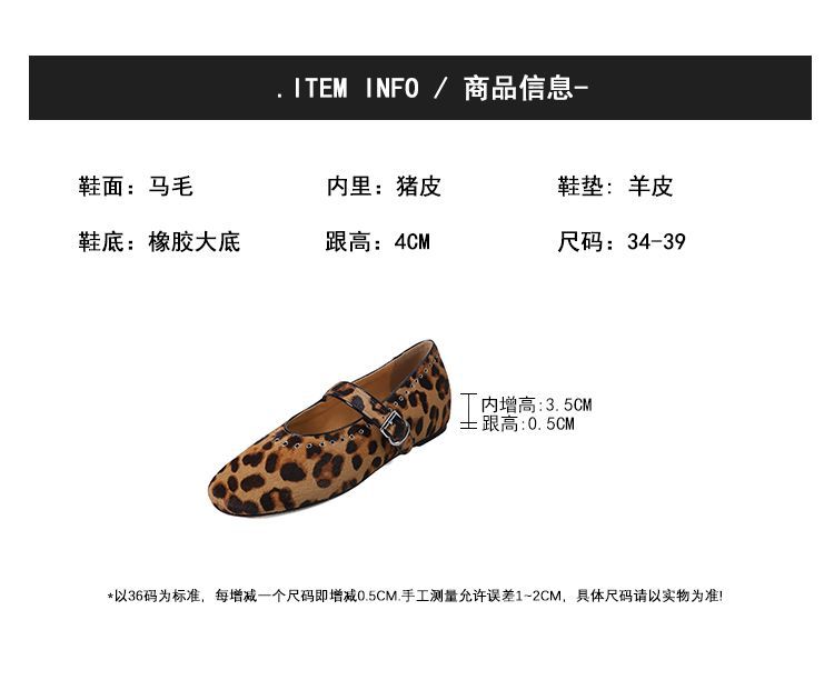양가죽 말털 여성용 신발 ~ 4cm 미드 힐 레트로 레오파드 무늬 메리 제인 신발 여성의 2025 년 봄과 가을 얕은 입 증가 신발스토어 가기