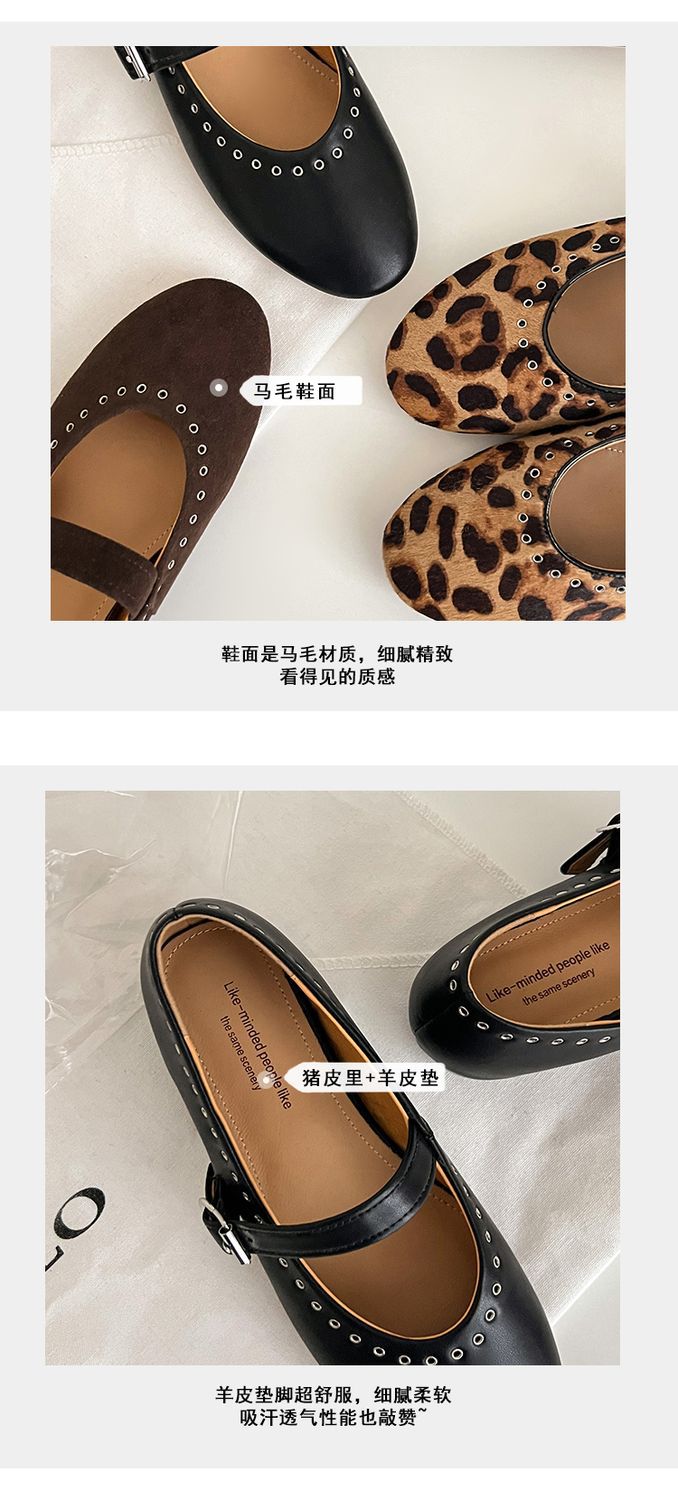 양가죽 말털 여성용 신발 ~ 4cm 미드 힐 레트로 레오파드 무늬 메리 제인 신발 여성의 2025 년 봄과 가을 얕은 입 증가 신발