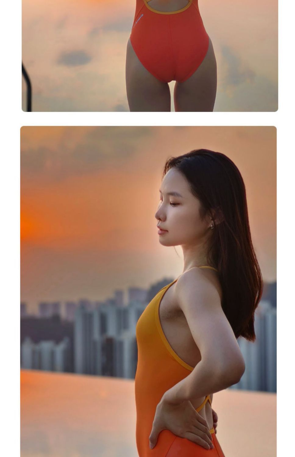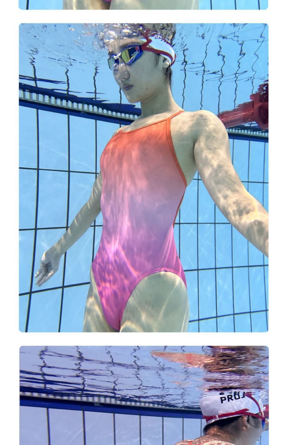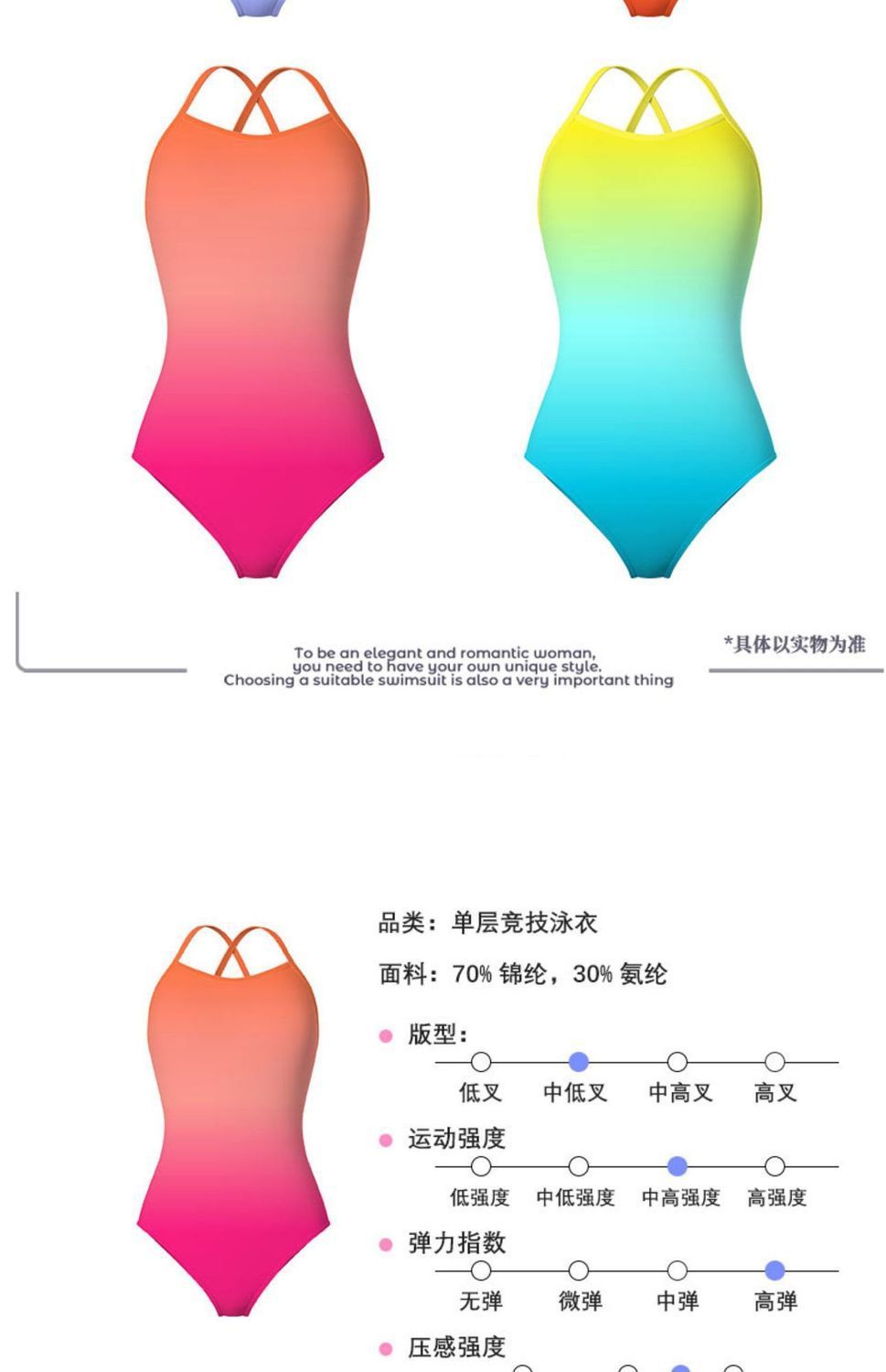 높은 색상 값 그라디언트 더블 레이어 원피스 경쟁 수영 세트 여자 여름 프로 스포츠 훈련 낮은 포크 배 덮개 슬림