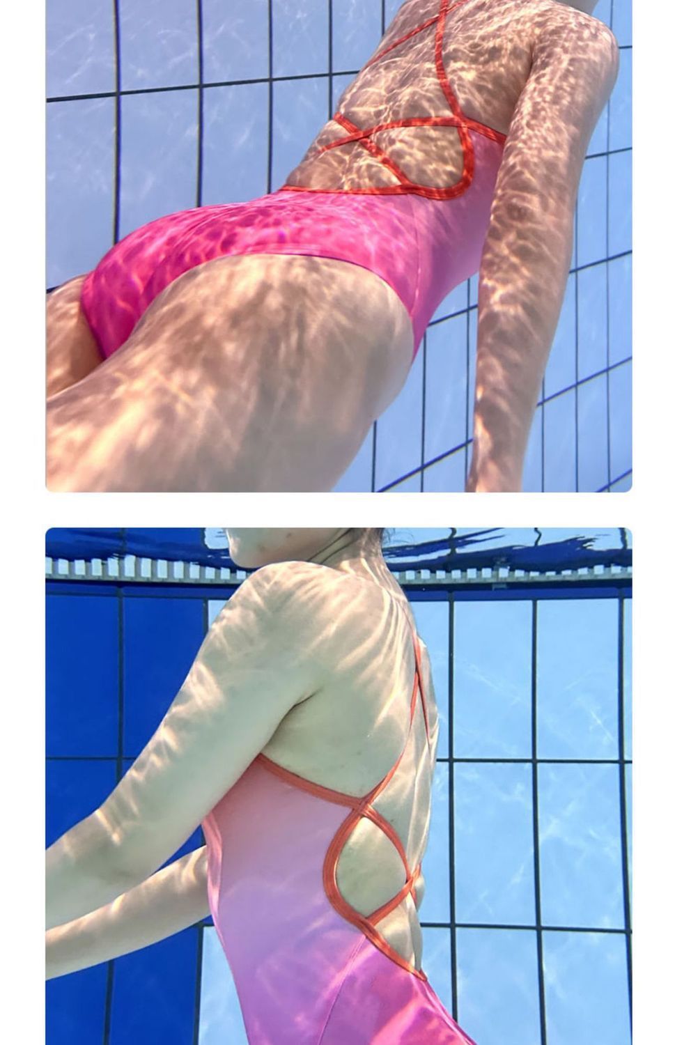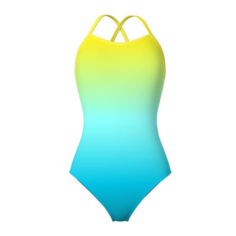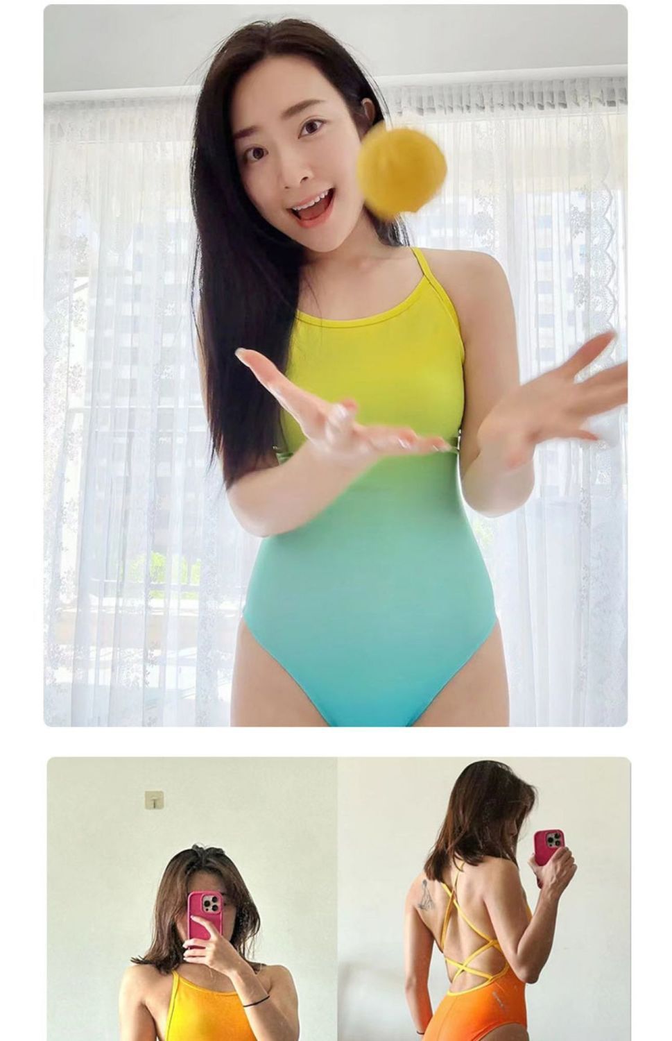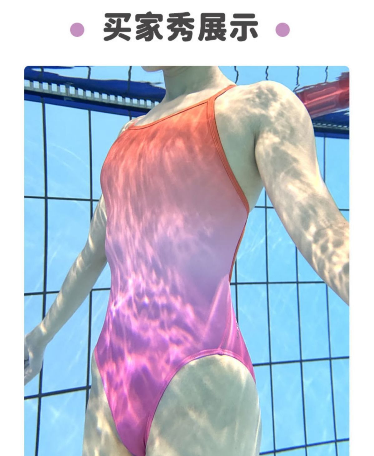높은 색상 값 그라디언트 더블 레이어 원피스 경쟁 수영 세트 여자 여름 프로 스포츠 훈련 낮은 포크 배 덮개 슬림스토어 가기