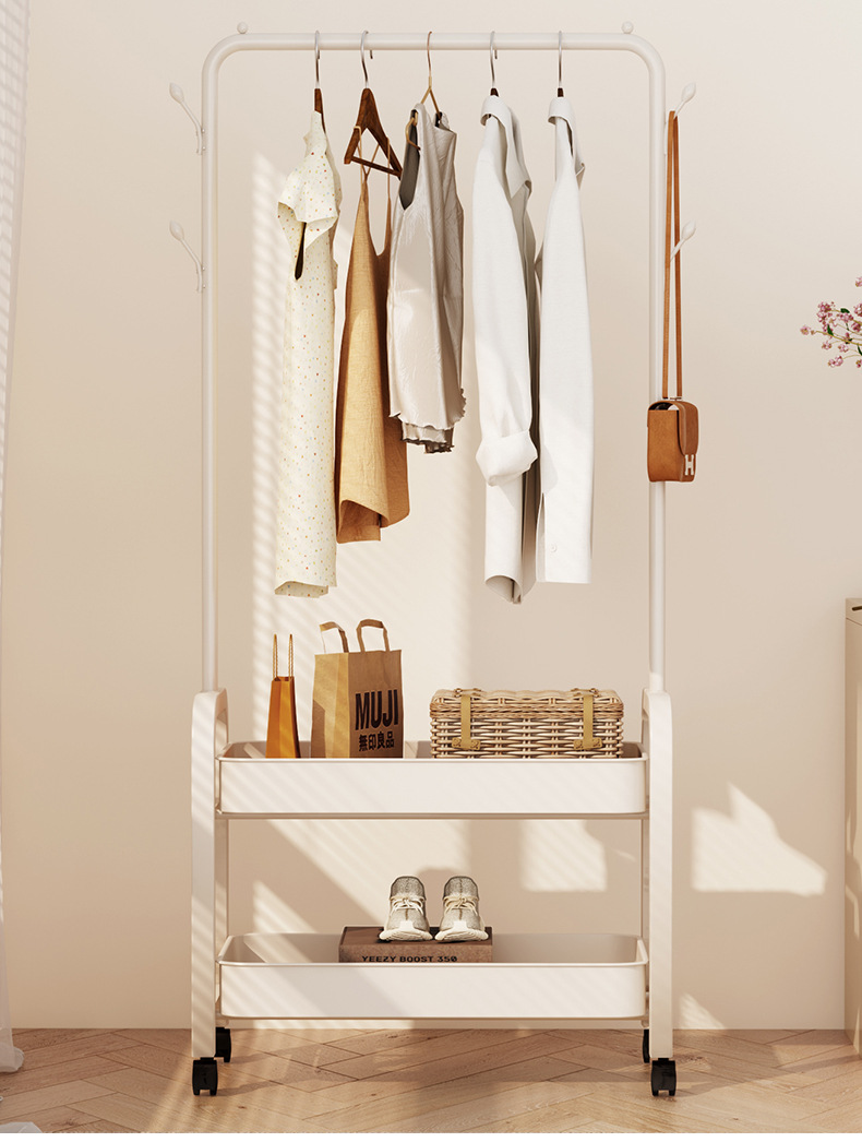 의류 랙 바닥-스탠딩 의류 옷걸이 침실 이동식 실내 저장 랙 가정용 의류 건조 막대 두꺼운 옷 옷걸이