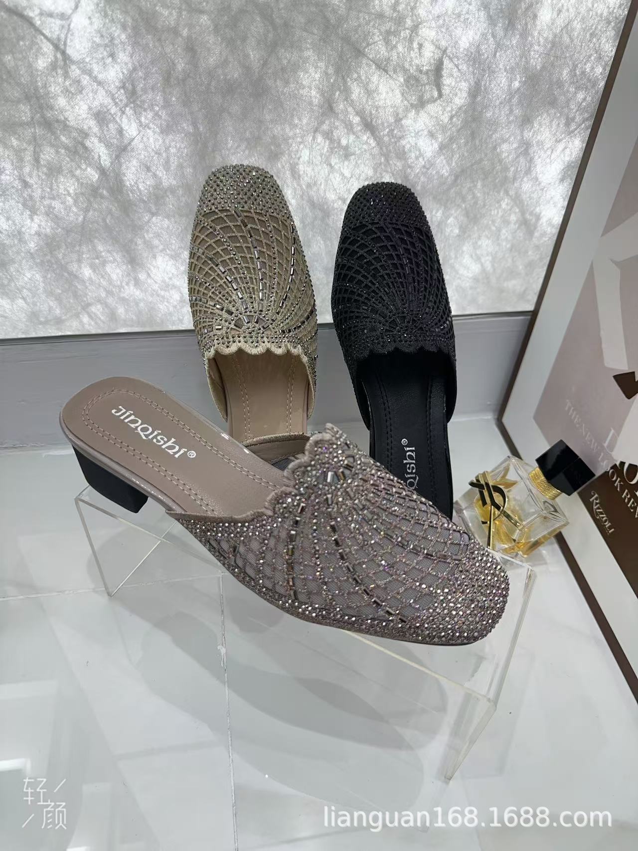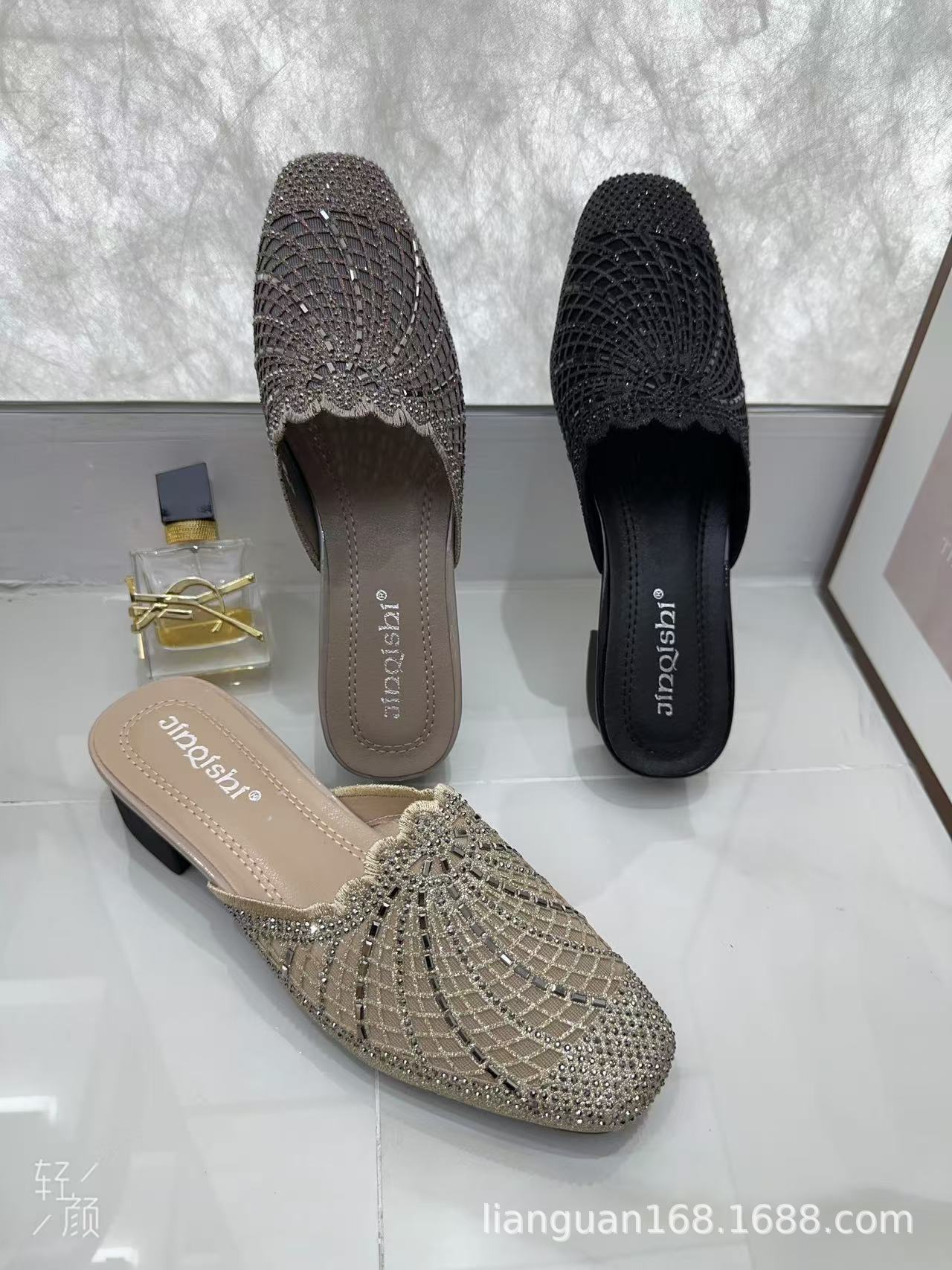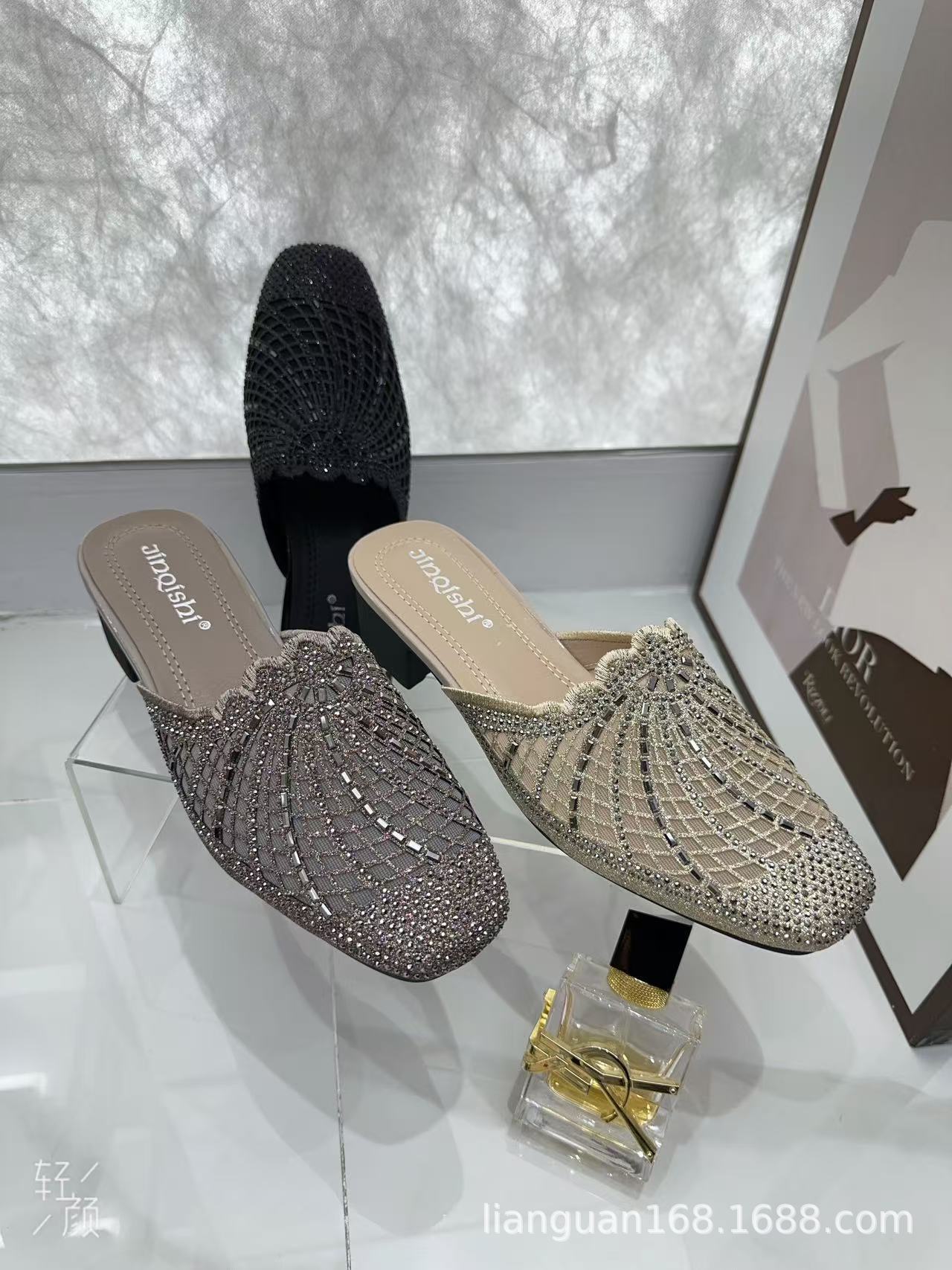 한국 패션 바오터우 여성 슬리퍼 통근 플랫 바닥 여성 슬리퍼 2025 봄 새 쇼핑몰 여성 신발 재고 도매