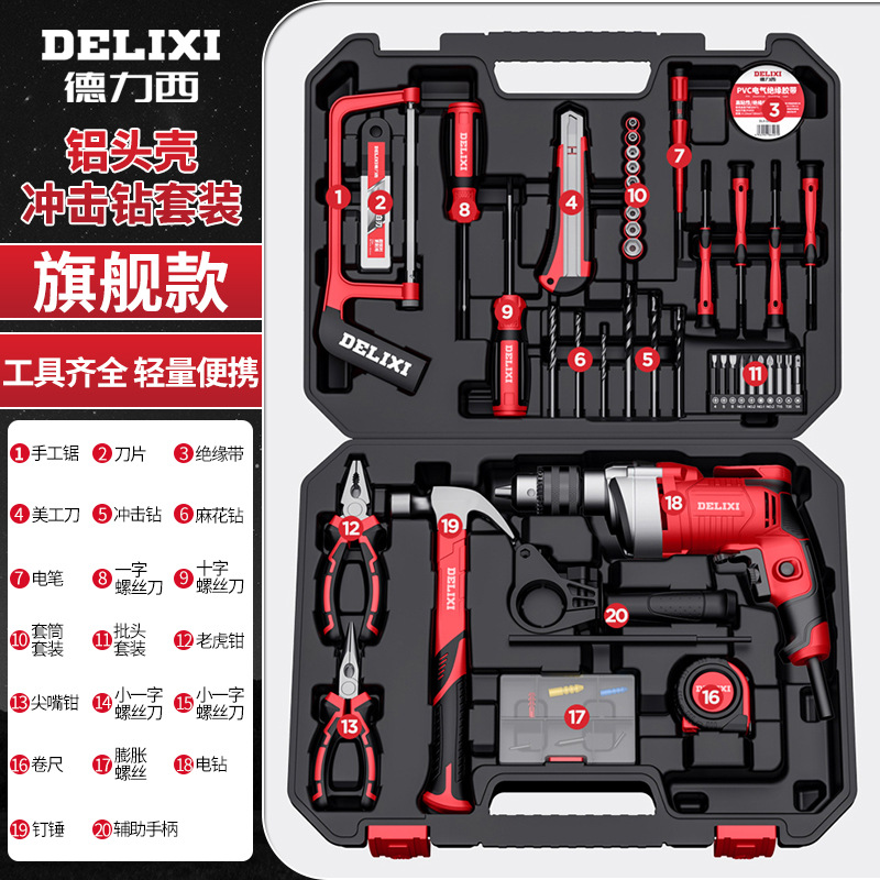 Delixi 전기 드릴 도구 가정용 세트 하드웨어 유지 보수 도구 세트 AC 충격 손 전기 드릴 다기능스토어 가기