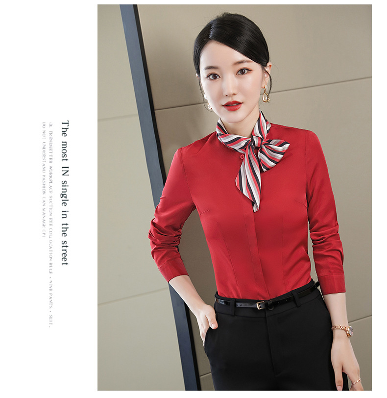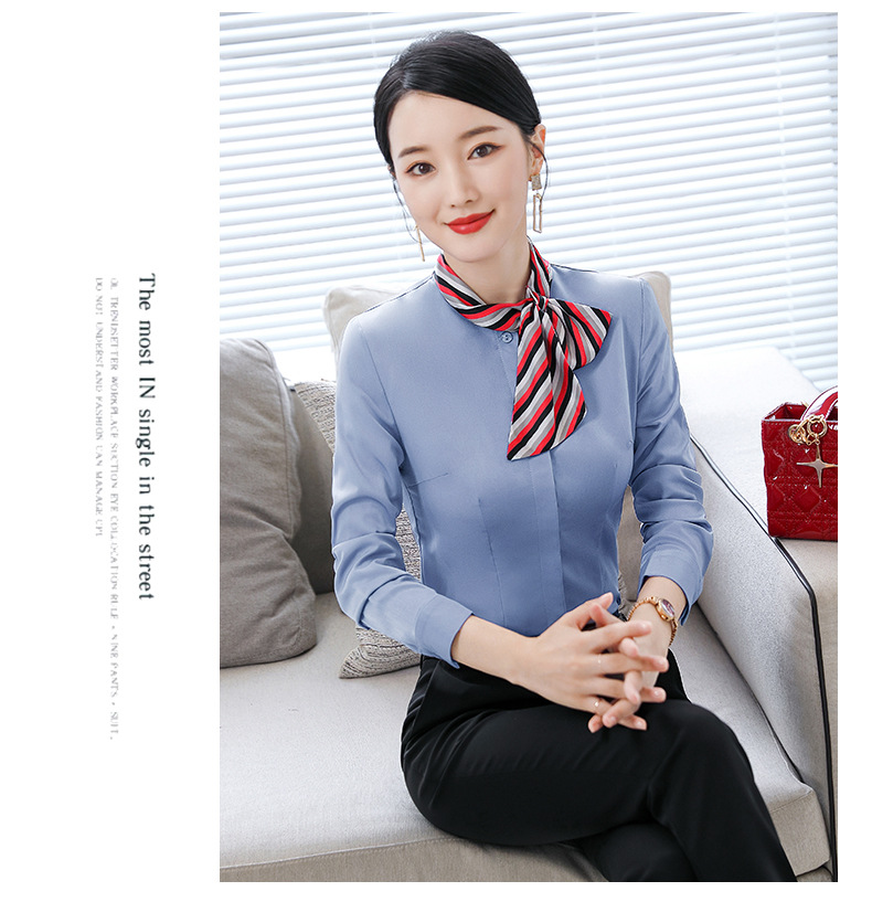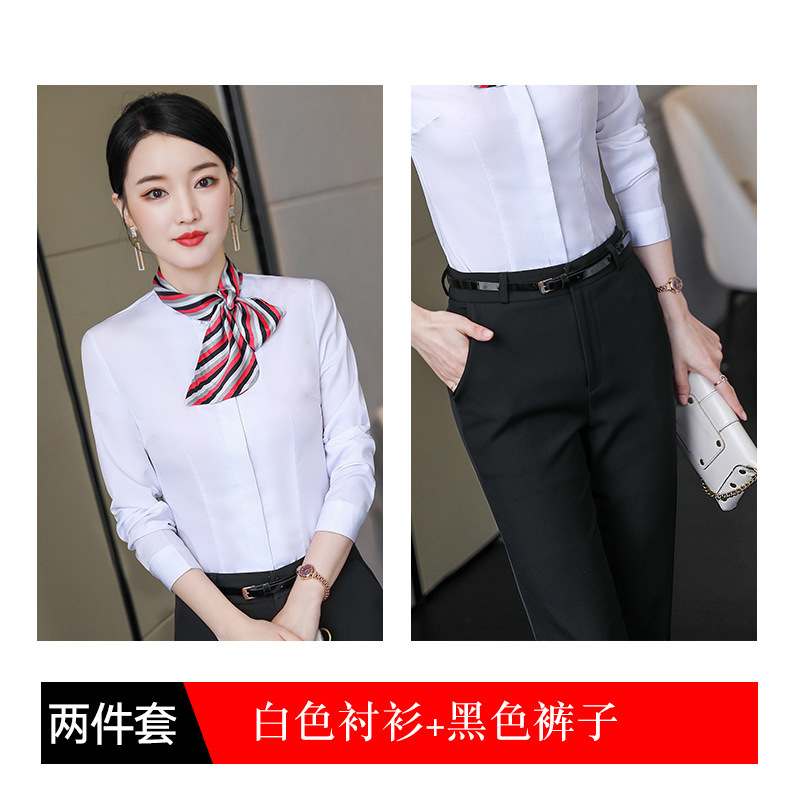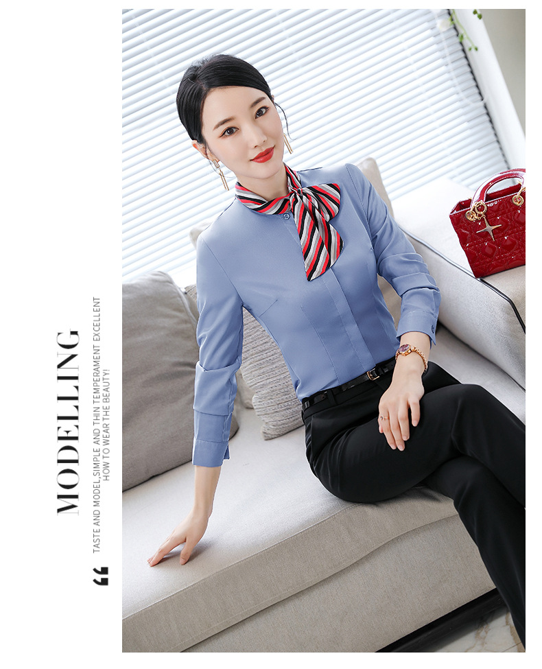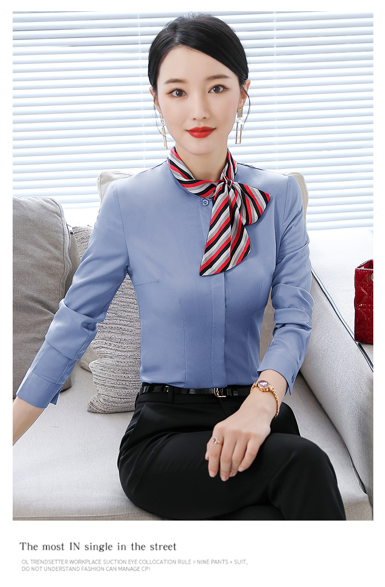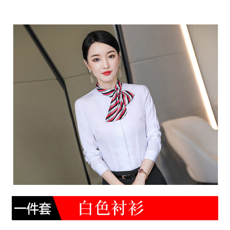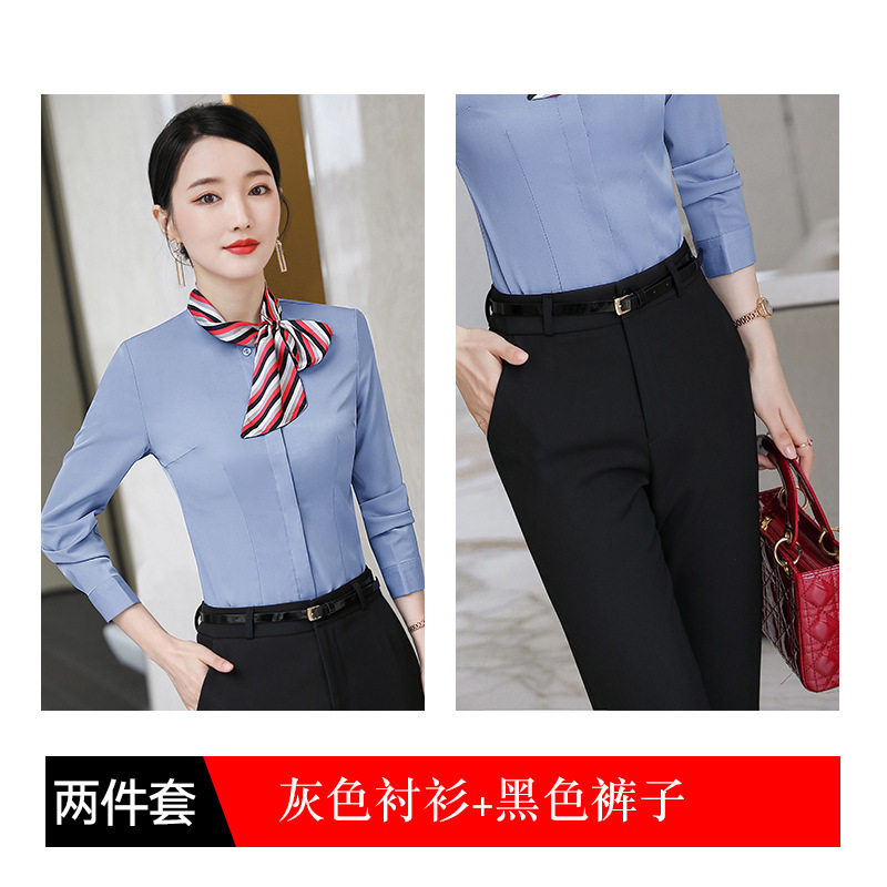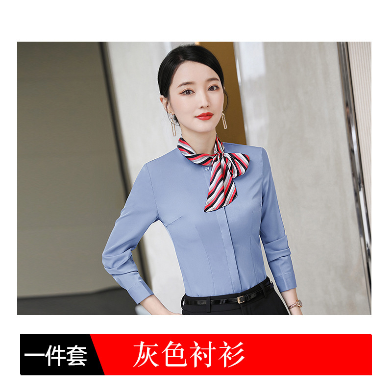 호텔 케이터링 승무원 작업 옷 긴 소매 셔츠 여성의 2024 새로운 간단한 단색 작업 셔츠 최고 가을