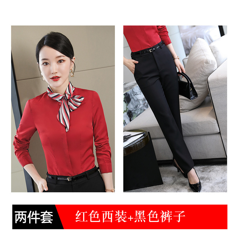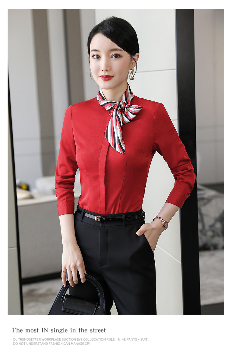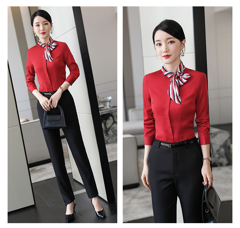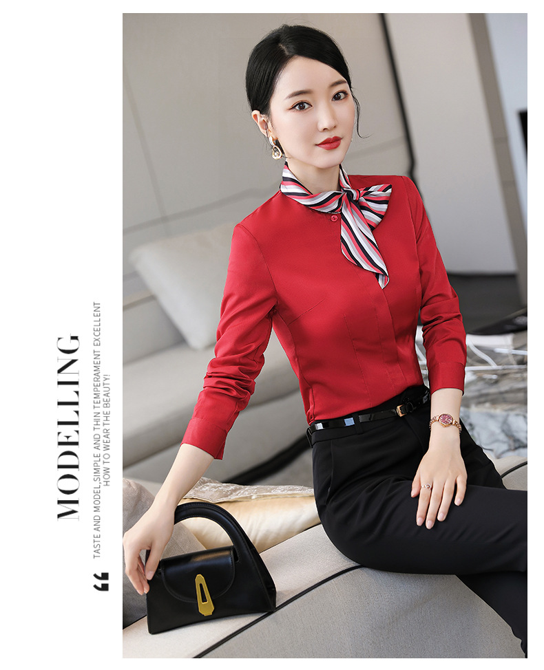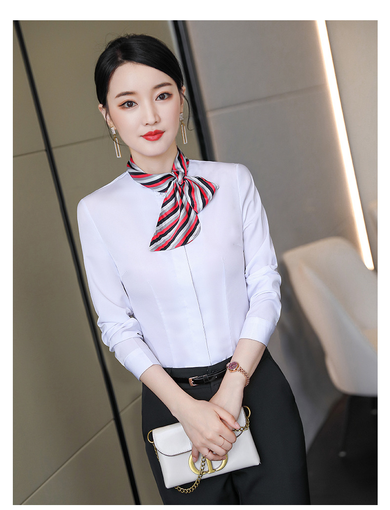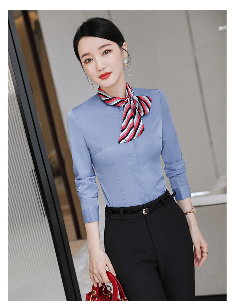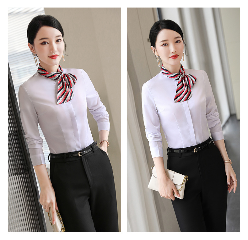 호텔 케이터링 승무원 작업 옷 긴 소매 셔츠 여성의 2024 새로운 간단한 단색 작업 셔츠 최고 가을
