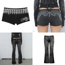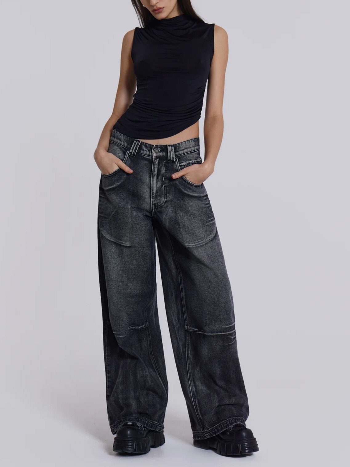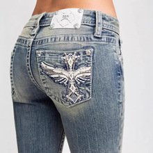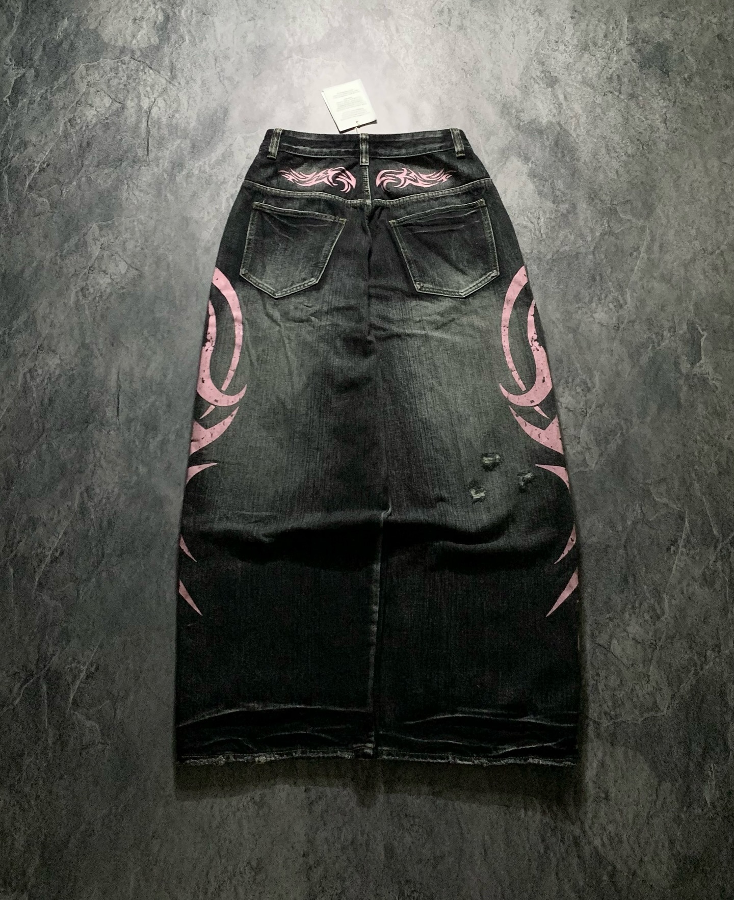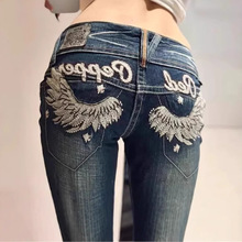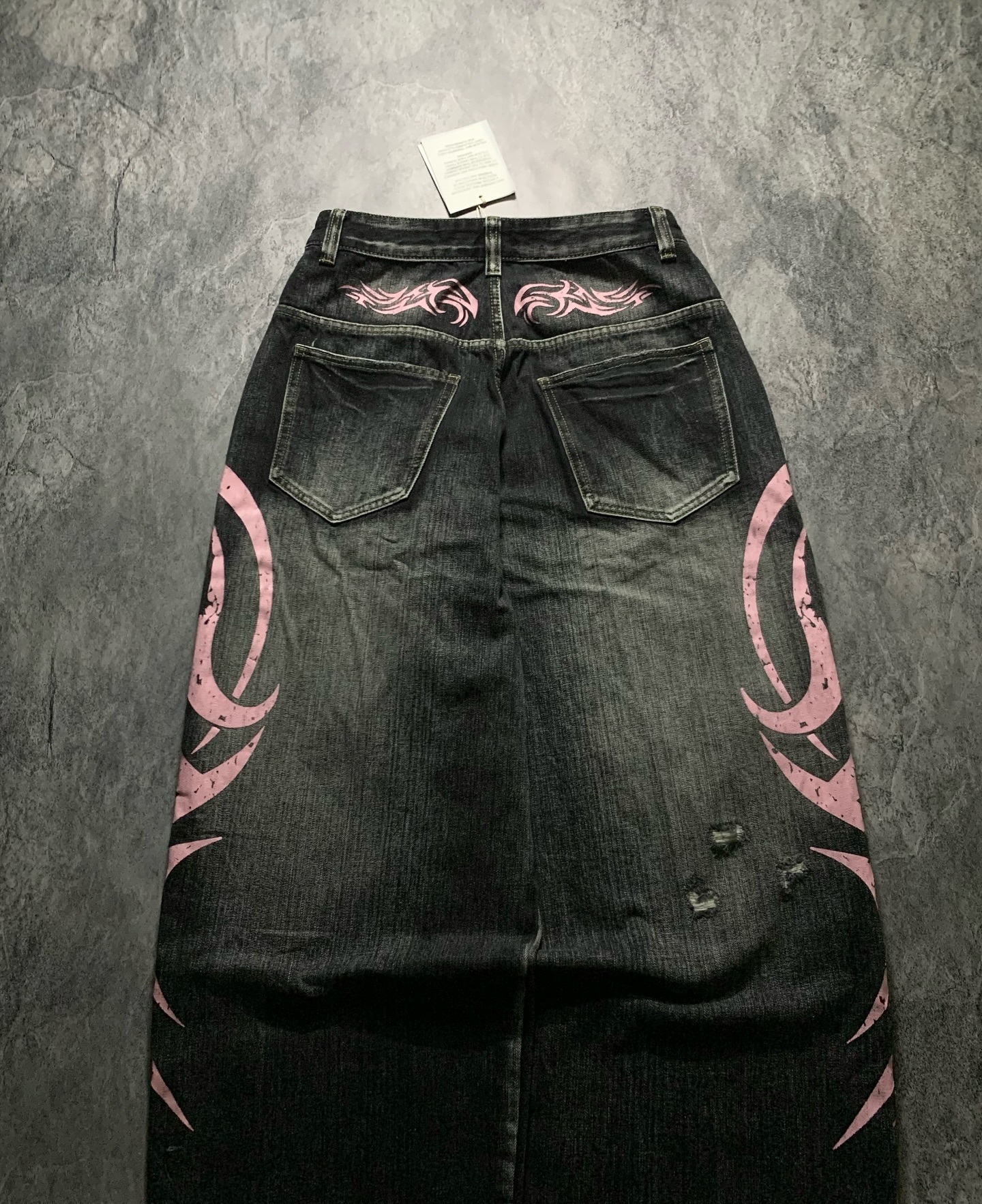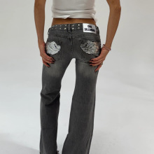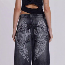 크로스보더 브랜드 라벨이 있는 트렌디한 워싱 데미지 프린트 데님 팬츠, 제이디드런던 스트리트 힙합 여성용 스트레이트 팬츠스토어 가기