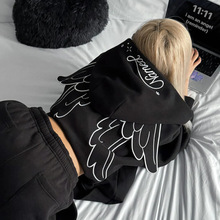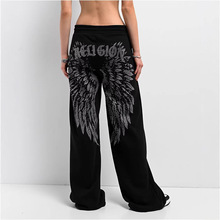 크로스보더 브랜드 라벨이 있는 트렌디한 워싱 데미지 프린트 데님 팬츠, 제이디드런던 스트리트 힙합 여성용 스트레이트 팬츠