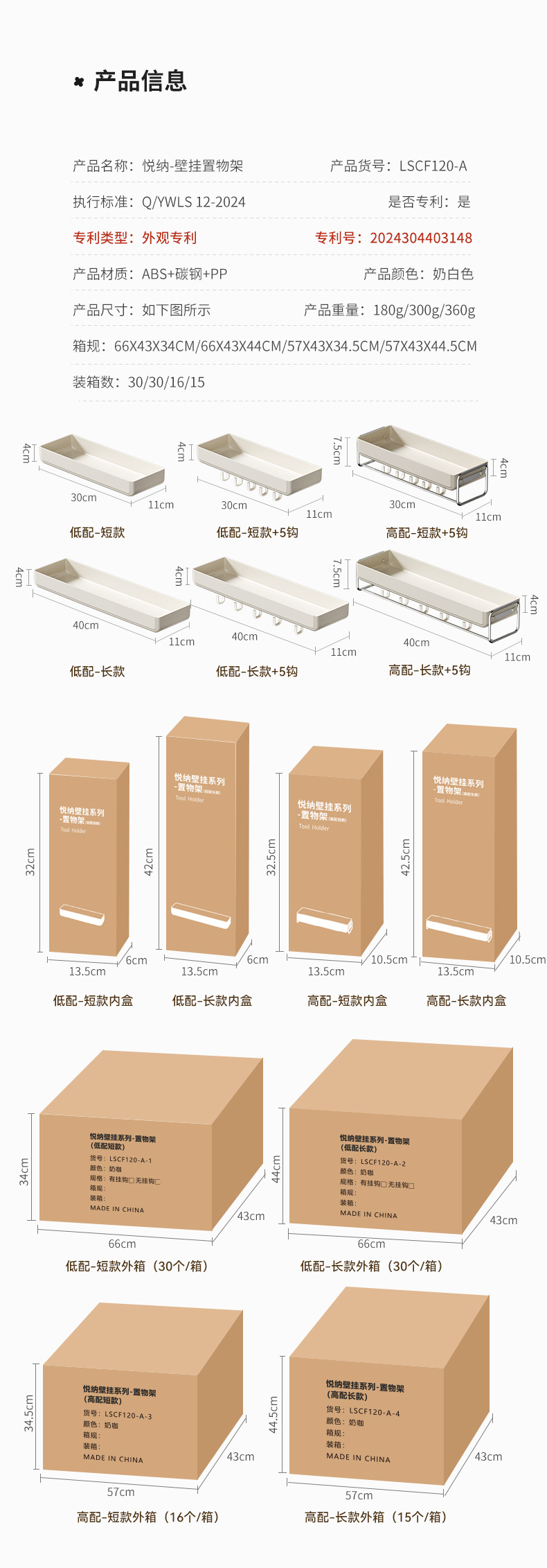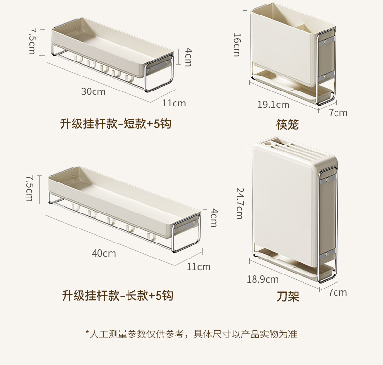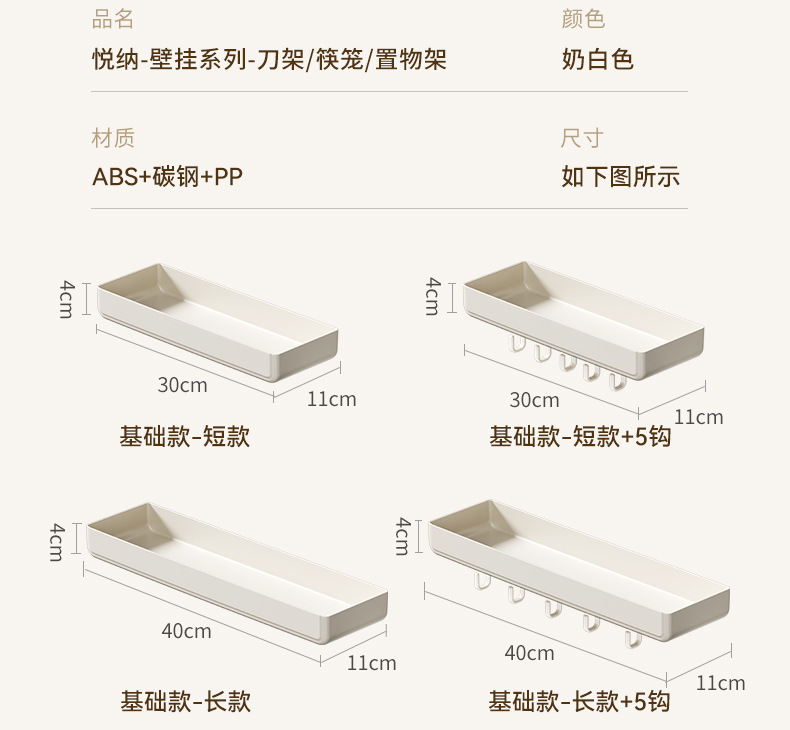 • 짧은 수납 선반 + 후크 5개(업그레이드된 걸이 막대 모델) - 30*11*4cm