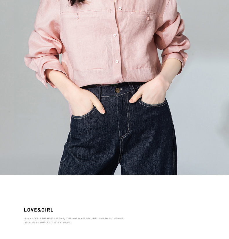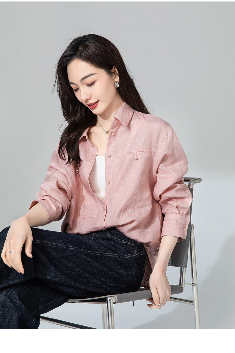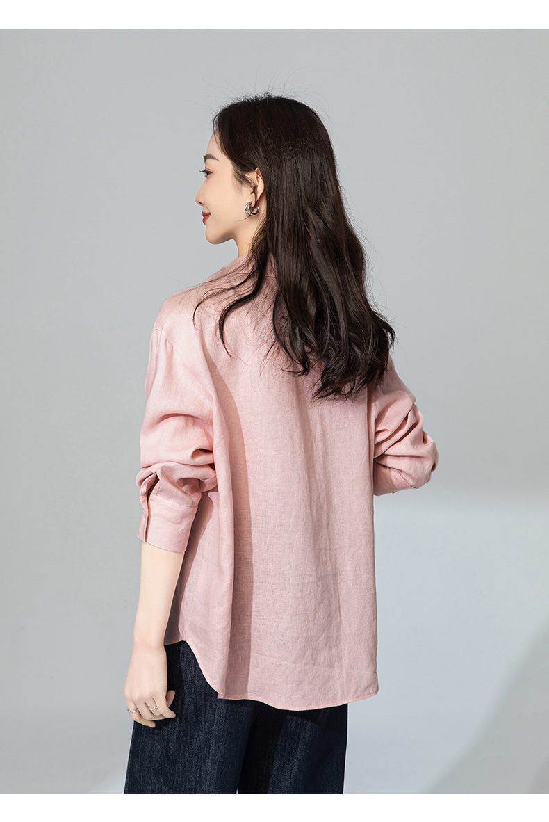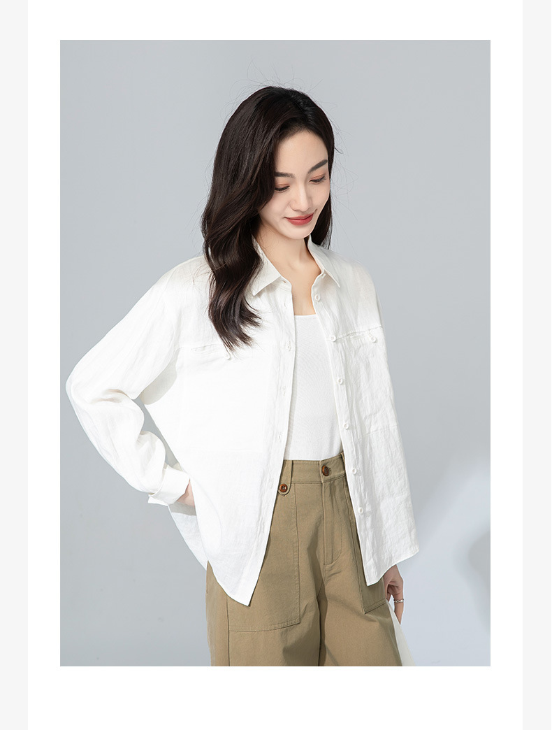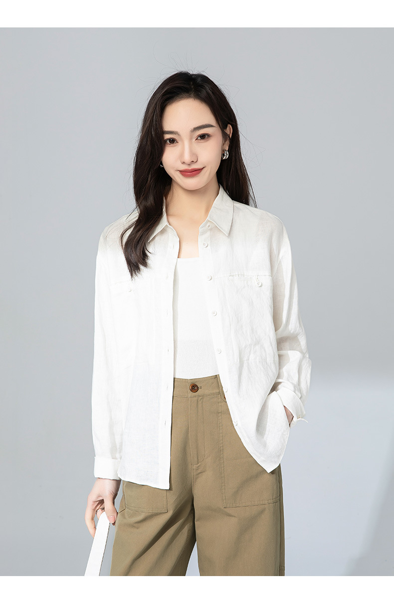 Xinge 프렌치 스타일 게으른 순수 리넨 선스크린 화이트 셔츠 느슨한 외부 높이와 간단한 긴 소매 탑 봄과 여름스토어 가기