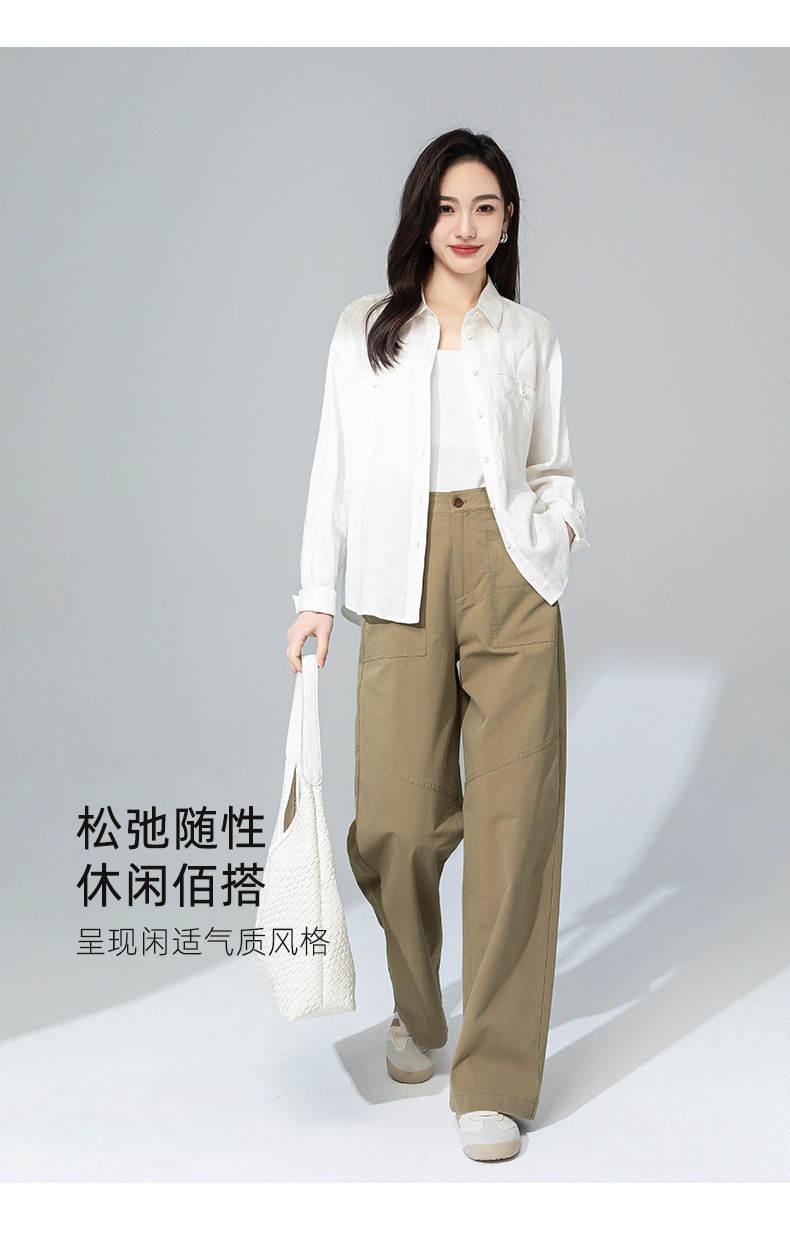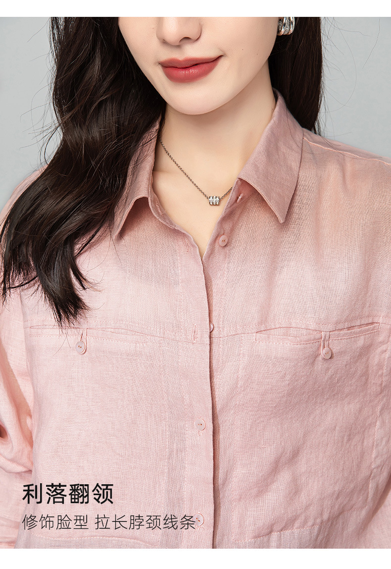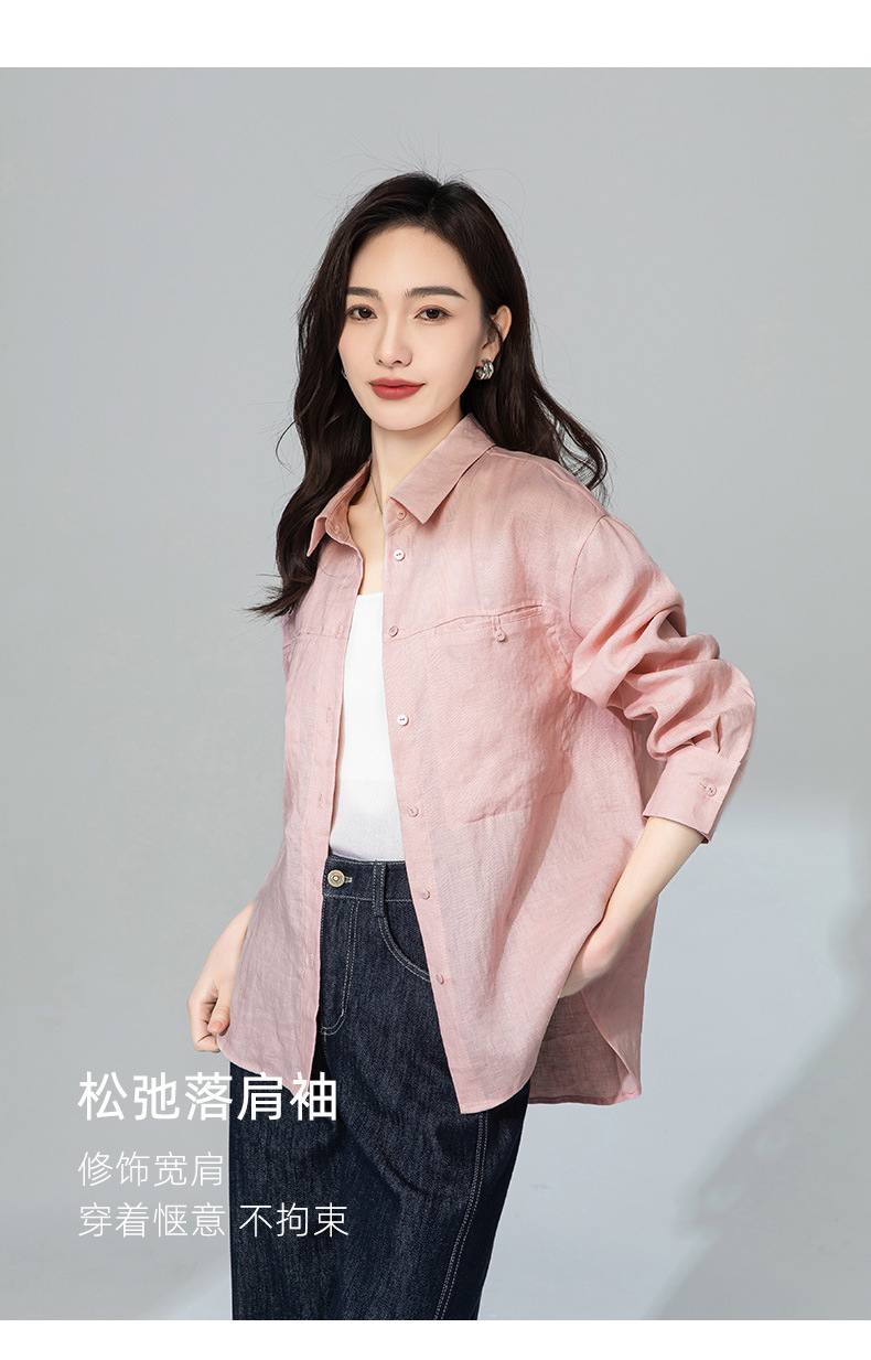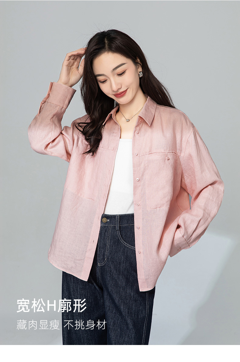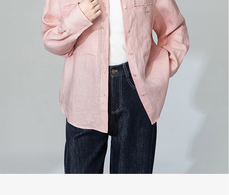Xinge 프렌치 스타일 게으른 순수 리넨 선스크린 화이트 셔츠 느슨한 외부 높이와 간단한 긴 소매 탑 봄과 여름스토어 가기