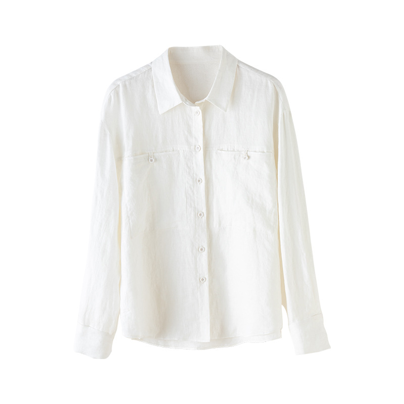 Xinge 프렌치 스타일 게으른 순수 리넨 선스크린 화이트 셔츠 느슨한 외부 높이와 간단한 긴 소매 탑 봄과 여름