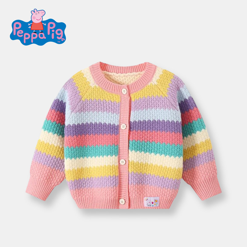 돼지 페이지 아기 니트 카디건 봄과 가을 소녀 코트 베이비베이스 스웨터 어린이 최고 2024 가을과 겨울스토어 가기