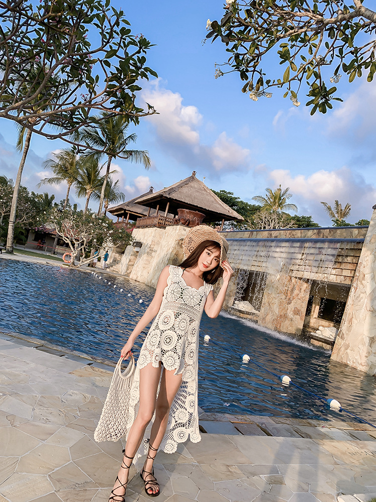 할로우 아웃 레이스 조끼 올 매치 롱 코튼 여자 크로 셰 뜨개질 피닉스 테일 민소매 니트 조끼 탑 해변 블라우스스토어 가기