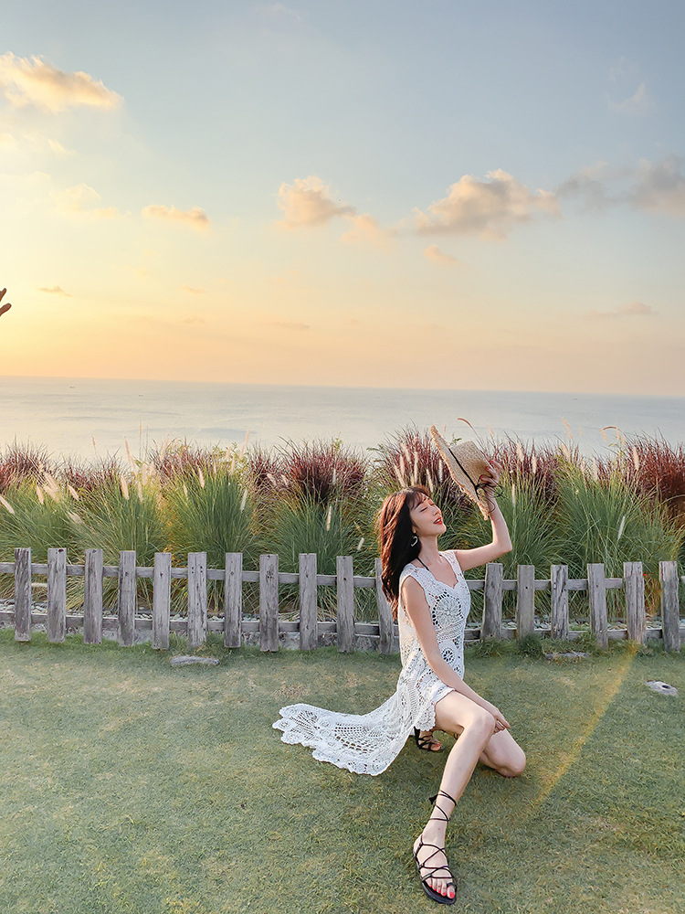 할로우 아웃 레이스 조끼 올 매치 롱 코튼 여자 크로 셰 뜨개질 피닉스 테일 민소매 니트 조끼 탑 해변 블라우스