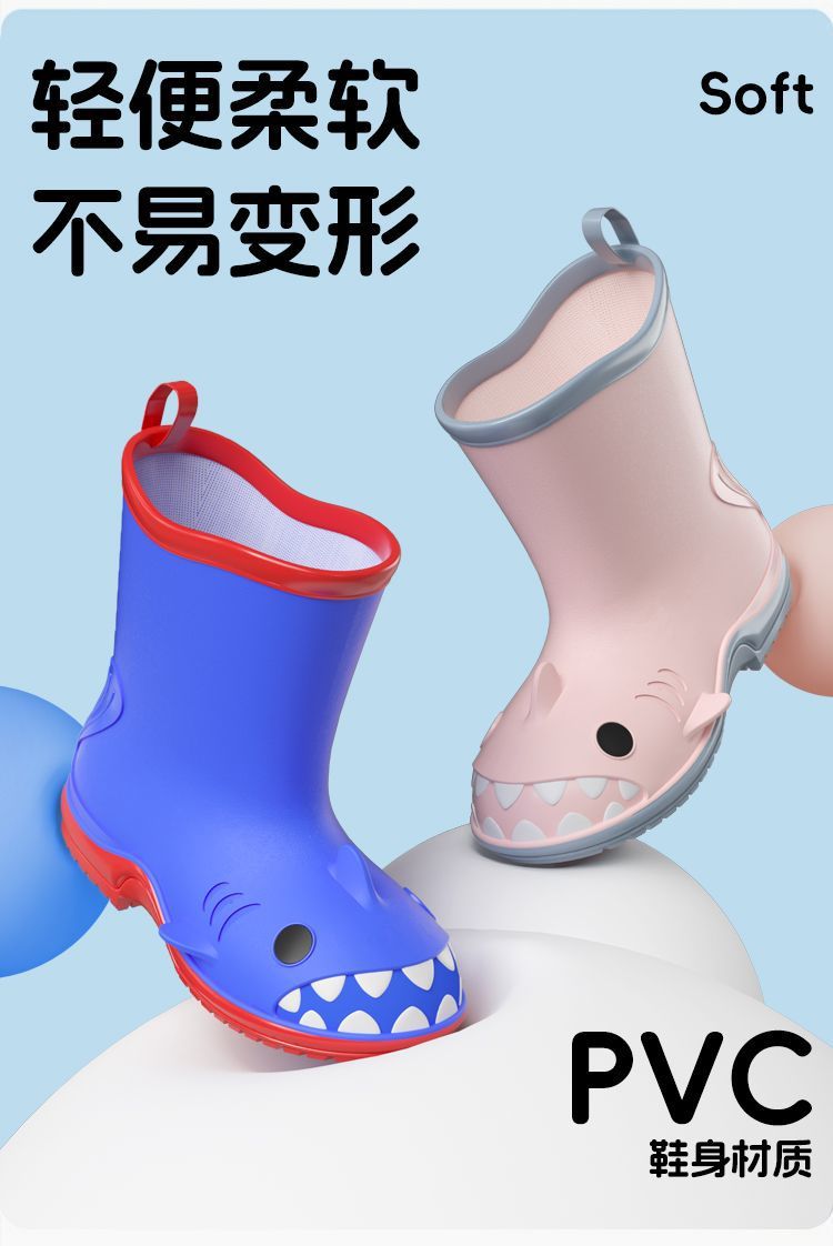 • 벨벳을 더해주는 재미있고 귀여운 상어 만화 장화 [핑크]