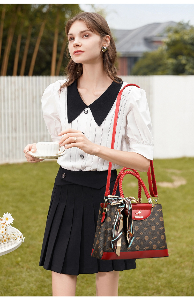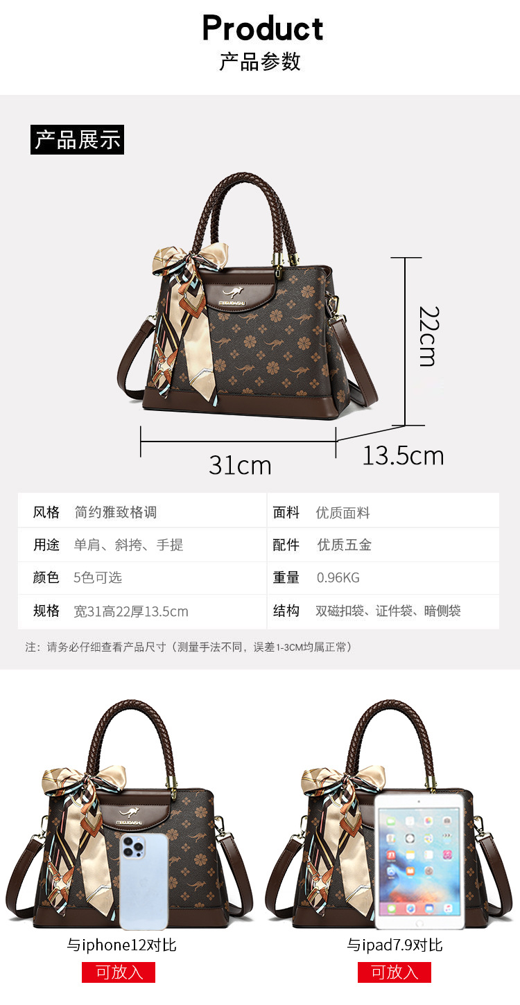 어머니를위한 늙은 꽃 여성 가방 2023 새로운 중년 여성 올 매치 핸드 숄더 크로스 바디 백 토트 백 리본
