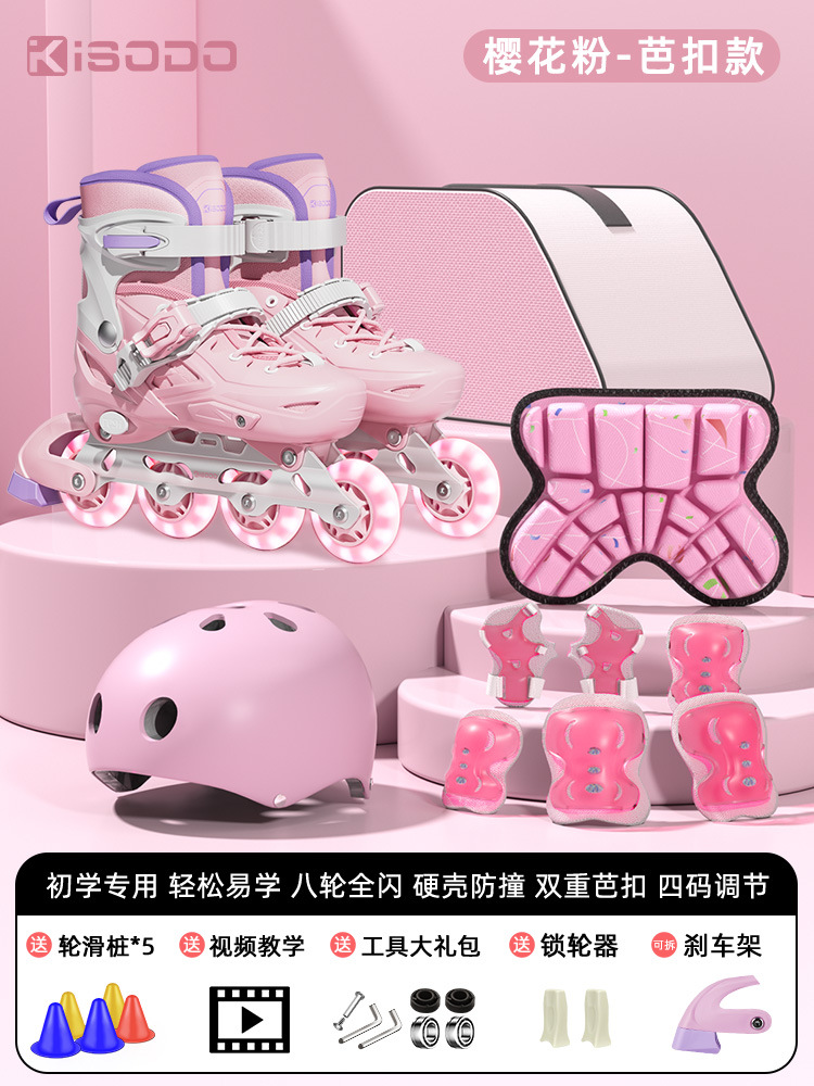 어린이 롤러 스케이트 롤러 스케이트 소녀 소년 전체 세트 초보자 소녀 인라인 롤러 스케이트