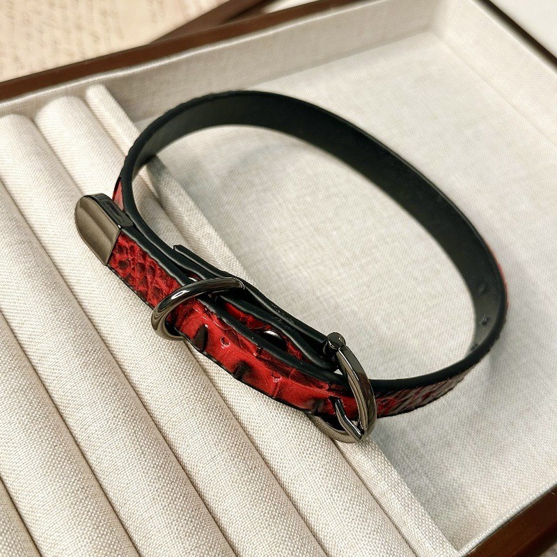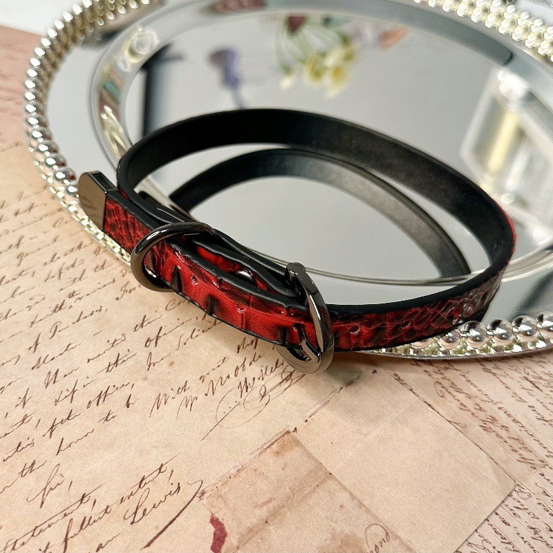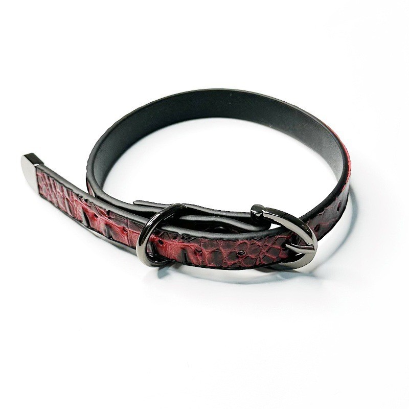 • 건 블랙과 레드 악어 패턴 벨트 버클