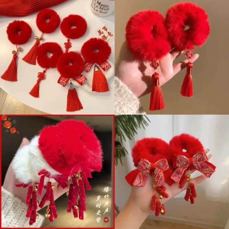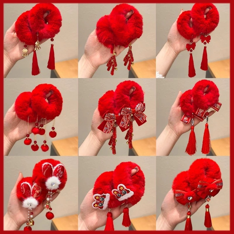 새해 봉제 머리 루프 술 머리 카드 머리 머리 머리띠 중국 스타일 빨간 머리띠 어린이 새해 머리 액세서리스토어 가기