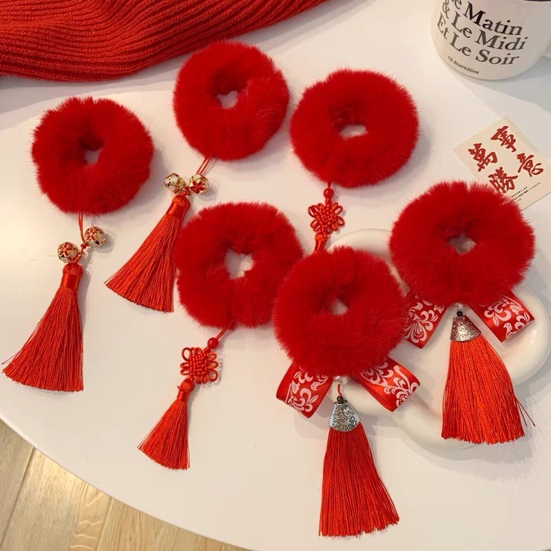 새해 봉제 머리 루프 술 머리 카드 머리 머리 머리띠 중국 스타일 빨간 머리띠 어린이 새해 머리 액세서리