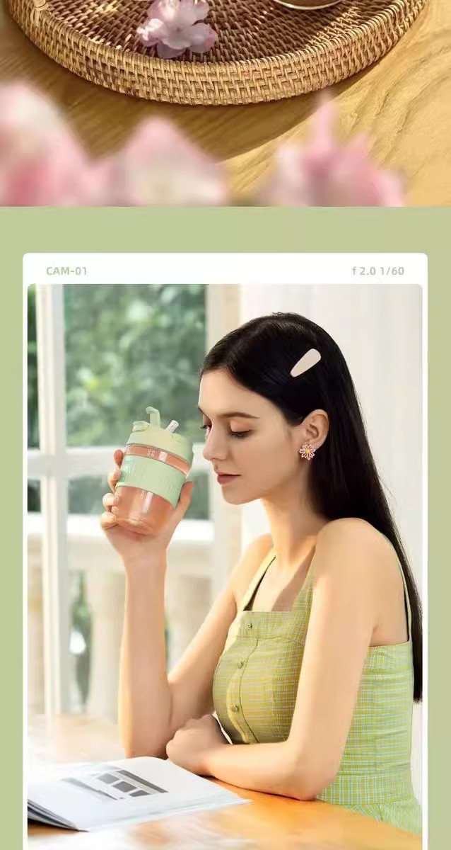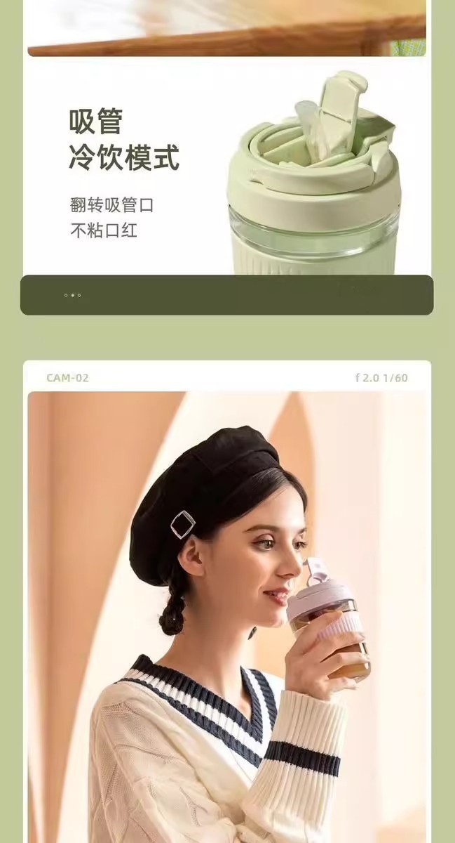 인터넷 연예인 더블 음료 컵 유리 귀여운 유리 흡입 튜브 컵 두꺼운 휴대용 주스 음료 컵 광고 선물 어린이 컵
