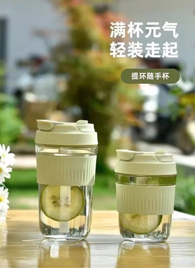 인터넷 연예인 더블 음료 컵 유리 귀여운 유리 흡입 튜브 컵 두꺼운 휴대용 주스 음료 컵 광고 선물 어린이 컵스토어 가기