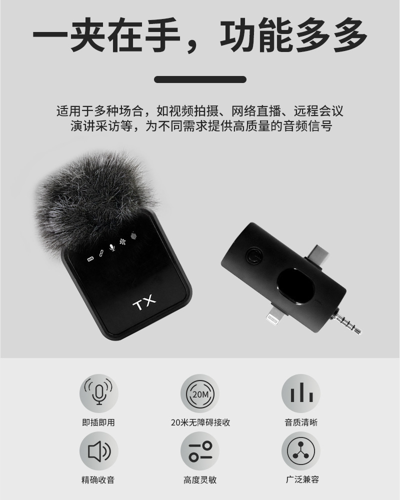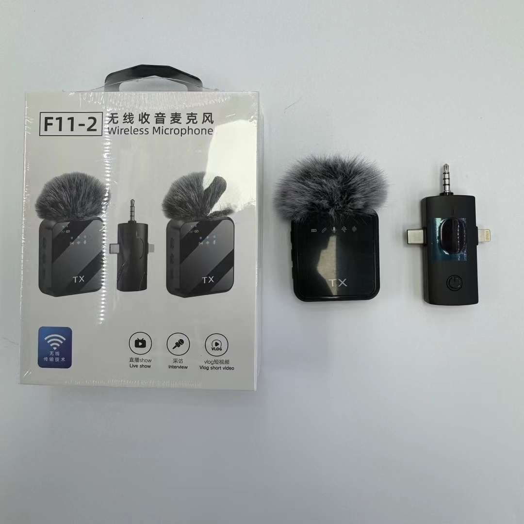 국경 간 F11-2 무선 칼라 클립 마이크 일대일 휴대 전화 비디오 라이브 노이즈 감소 3 대 1 라디오 마이크
