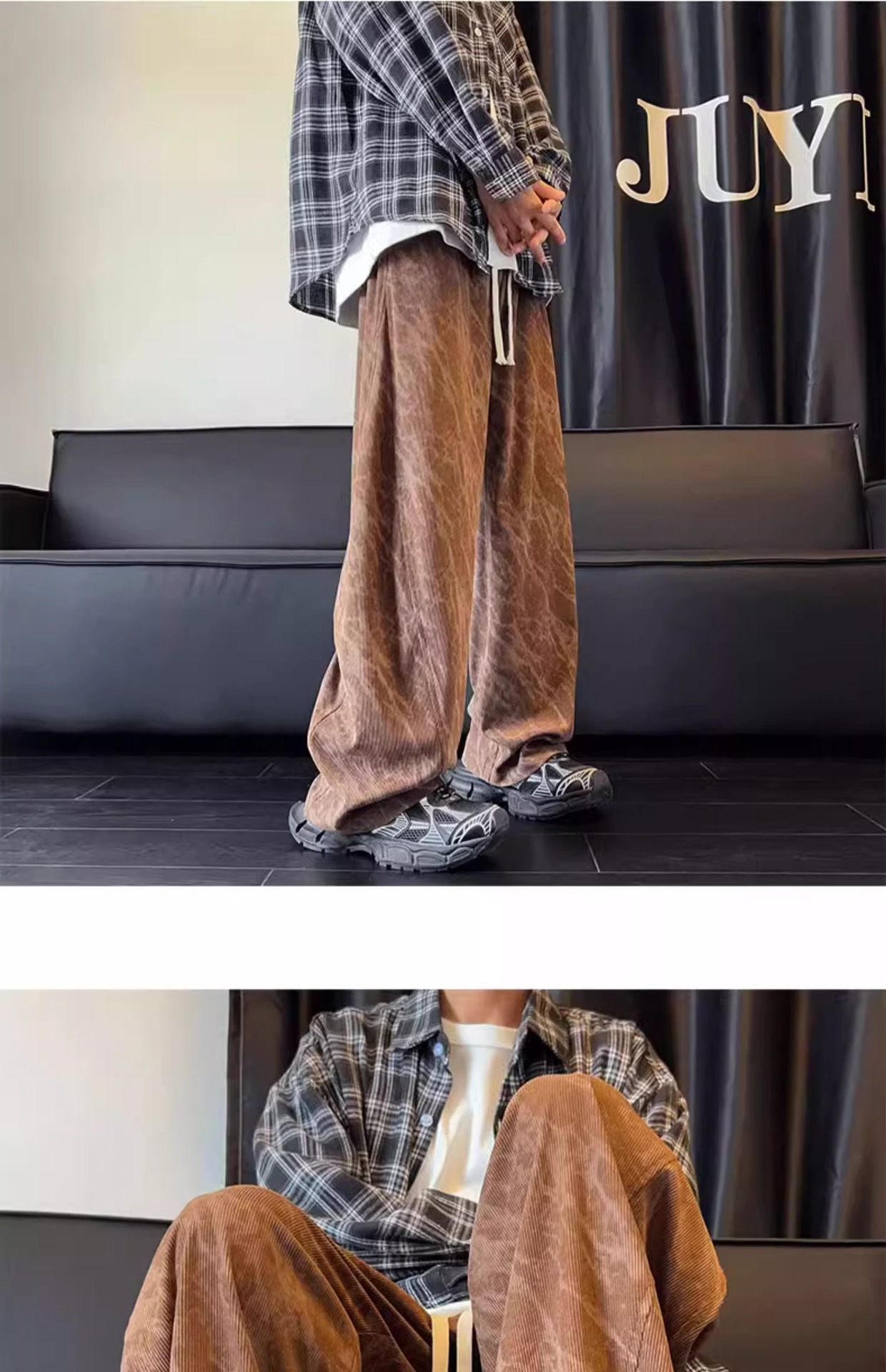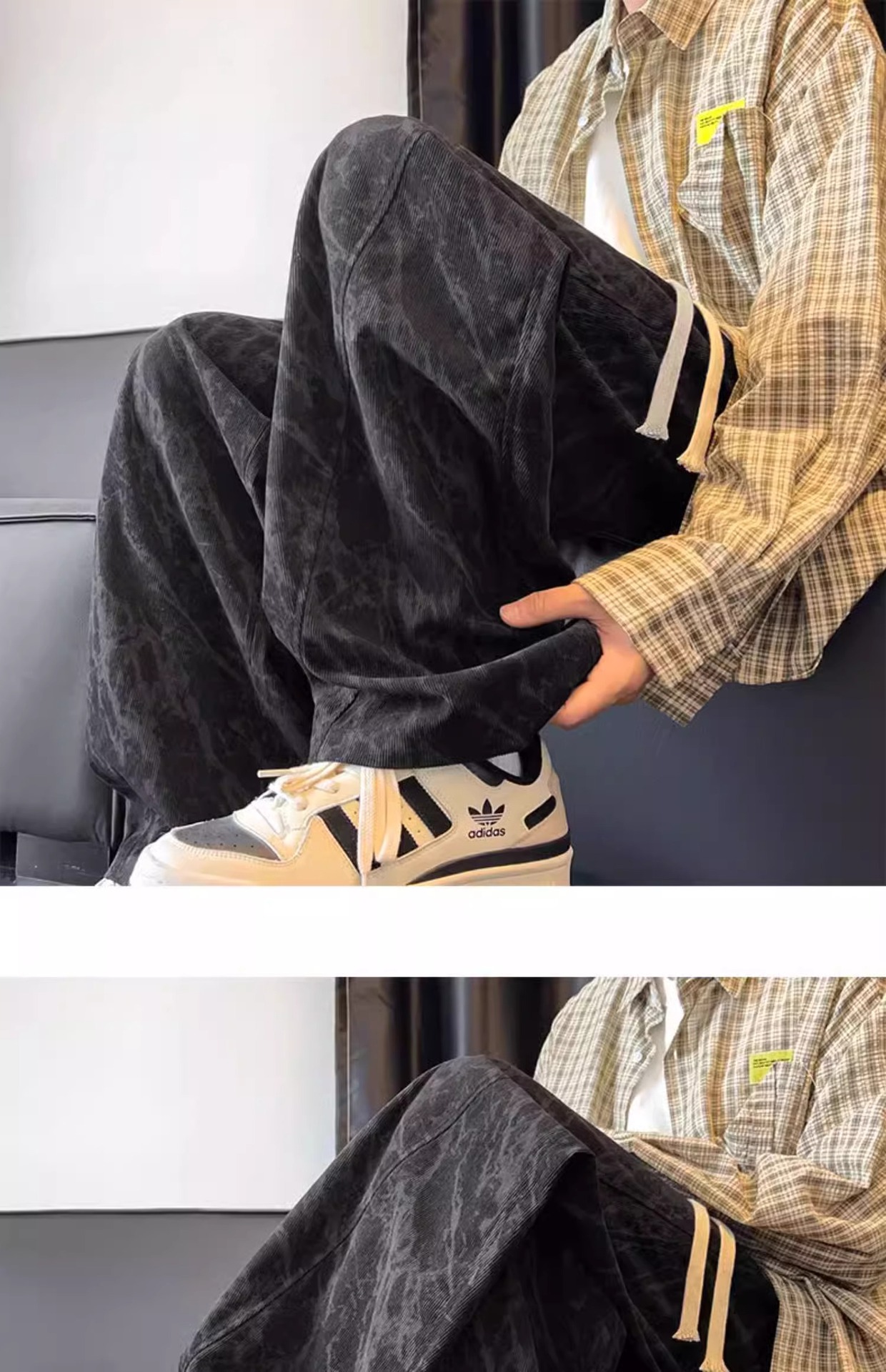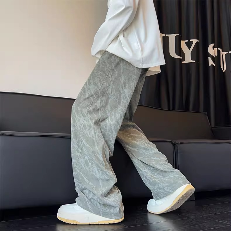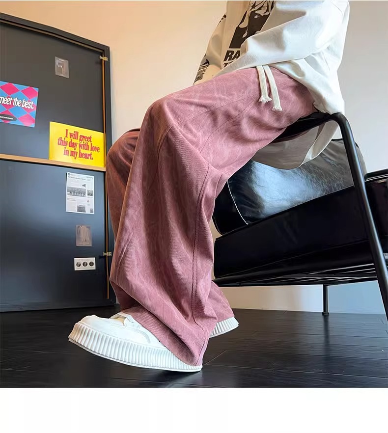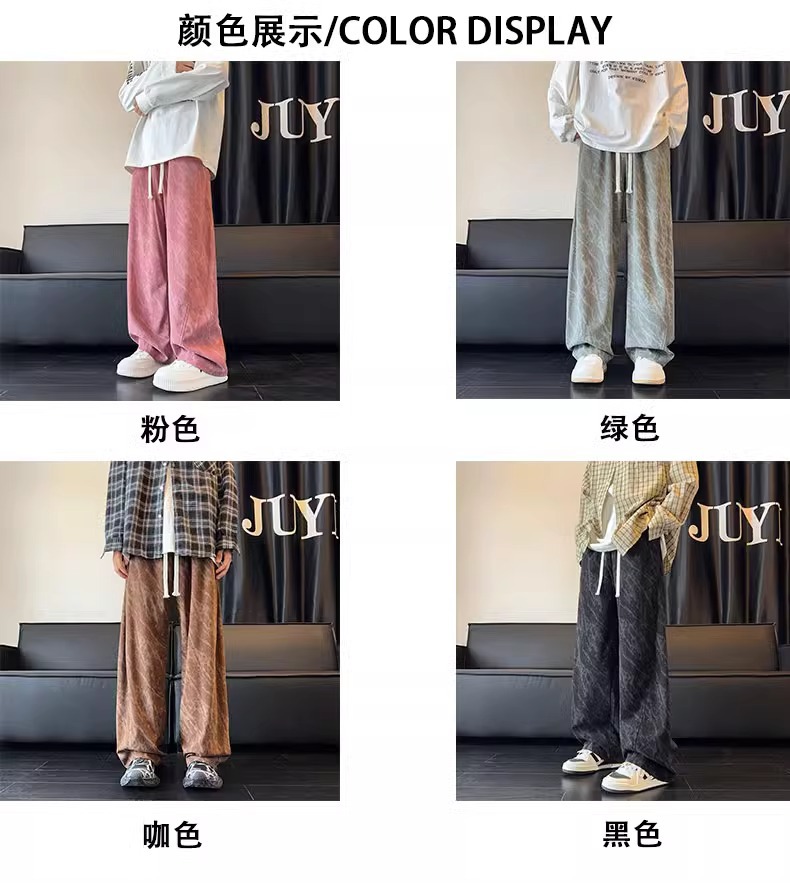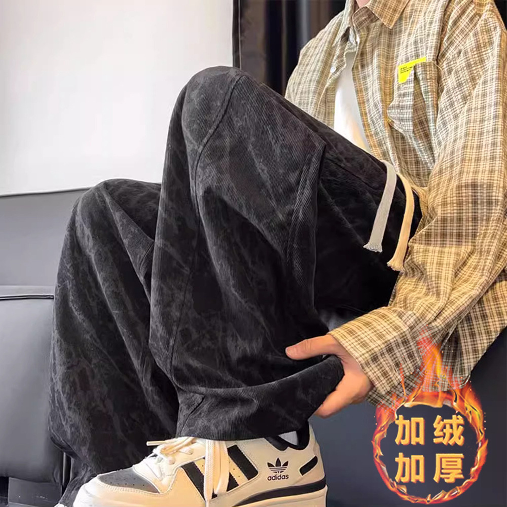 봄철 타이다이 코듀로이 바지 남성용 스트레이트 루즈핏 와이드 팬츠 아메리칸 스타일 기모 스웨트팬츠 캐주얼 바지스토어 가기