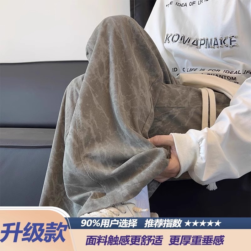 봄철 타이다이 코듀로이 바지 남성용 스트레이트 루즈핏 와이드 팬츠 아메리칸 스타일 기모 스웨트팬츠 캐주얼 바지