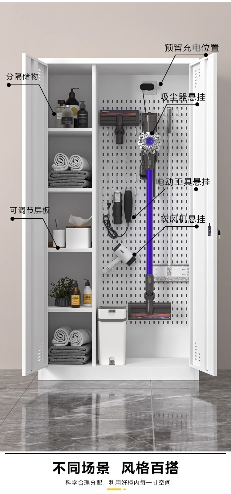 홀보드형 발코니 캐비닛, 가정용 캐비닛, 청소용품 캐비닛, 학교 청소용품 및 잡화 보관 캐비닛, 야외 정원 도구 보관 캐비닛스토어 가기