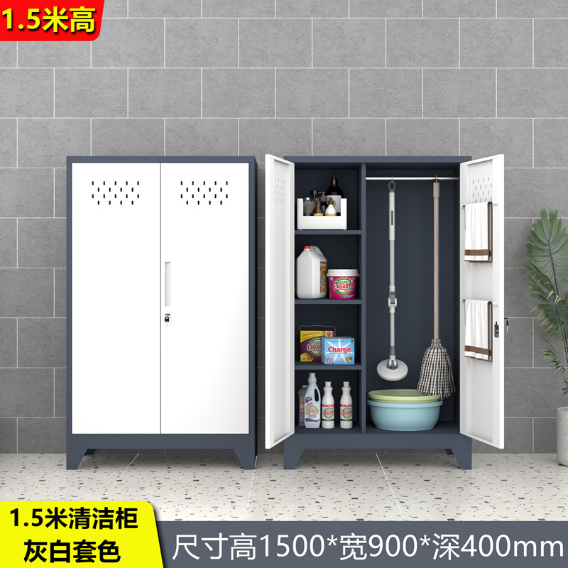• 1.5m 하이 그레이 화이트 양문형 청소 캐비닛