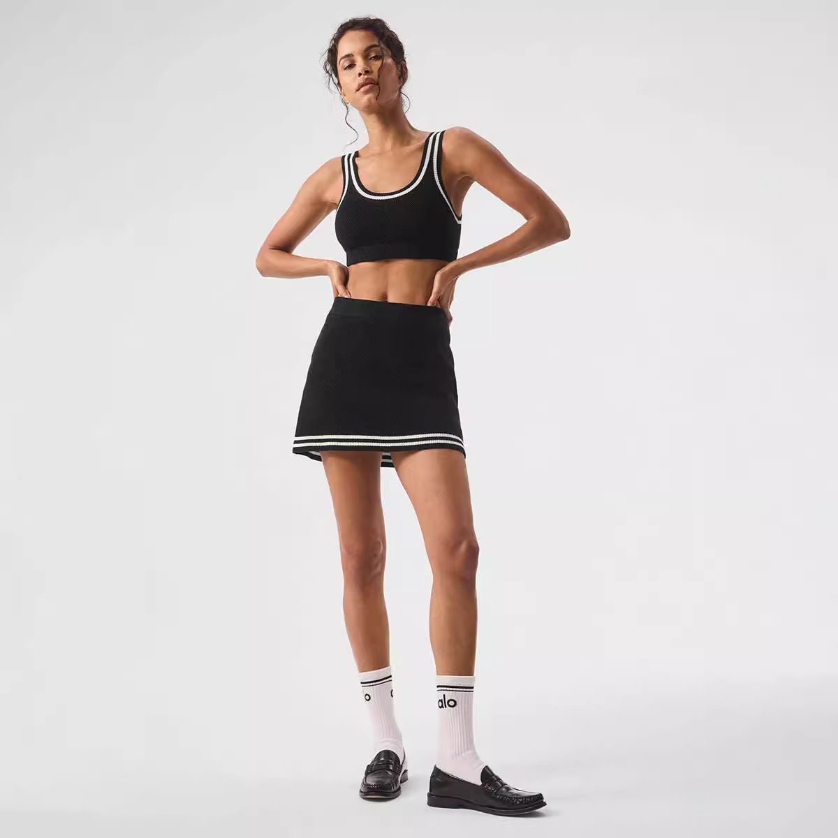 여성용 여름 스포츠 캐주얼 통기성 니트 세트 여성 캐주얼 니트 스포츠 스커트